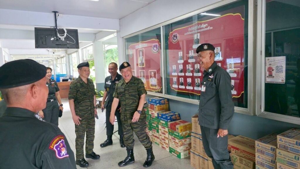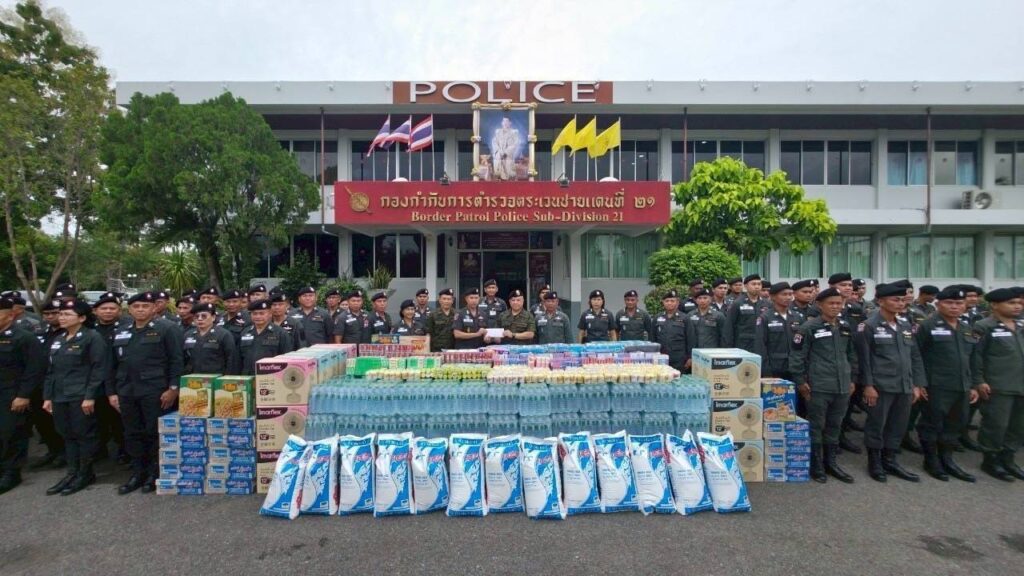 วันที่ 27 ก.ค.2568 เวลา 12.30 น. ณ กก.ตชด.21 ต.เฉนียง อ.เมือง จ.สุรินทร์ : พล.ต.อ.กิตติ์รัฐ พันธุ์เพ็ชร์ ผบ.ตร. มอบหมายให้ พล.ต.อ.อัคราเดช พิมลศรี ที่ปรึกษาพิเศษ ตร./ผอ.ศนรด.ตร. พร้อมด้วย พ.ต.อ.ศราวุธ สวัสดิชัย รอง ผบก.ภ.จ.ปทุมธานี/หน.สง.ฯ และคณะเดินทางมาตรวจเยี่ยมบำรุงขวัญข้าราชการตำรวจในสังกัด กก.ตชด.21 ในพื้นที่เสี่ยงภัยจากการสู้รบระหว่างไทย-กัมพูชา