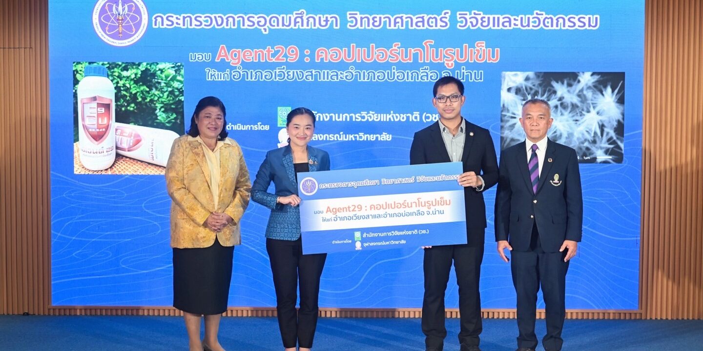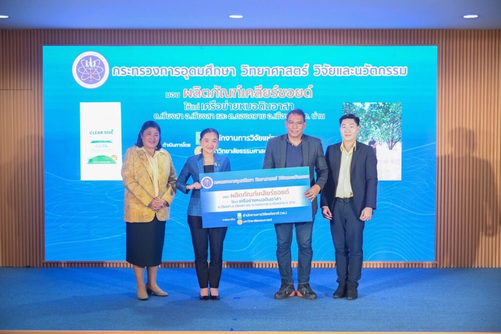 - ผลิตภัณฑ์เคลียร์ซอยด์ เคลียร์ซอยด์ มอบให้แก่ เครือข่ายหมอดินอาสา ตำบลเวียงสา อำเภอเวียงสา จังหวัดหวัดน่าน และเครือข่ายหมอดินอาสา บำนน้ำครกใหม่ ตำบลกอกองควาย อำเภอเมืองน่าน จังหวัดน่าน เพื่อเป็นผลิตภัณฑ์ที่ช่วยลดปริมาณโลหะหนักในดินหลังน้ำท่วม ได้แก่ สารหนู (As) แคดเมียม (Cd) และตะกั่ว (Pb) ซึ่งโลหะหนักเหล่านี้มักถูกพัดพามากับตะกอนดิน และสะสมในแปลงปลูกพืช การใช้ผลิตภัณฑ์เคลียร์ซอยด์จะช่วยลดปริมาณสารพิษตกค้าง ได้ภายใน 1 เดือน