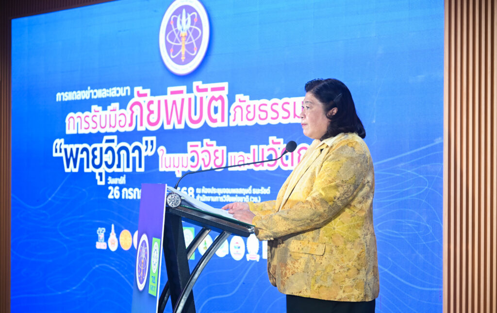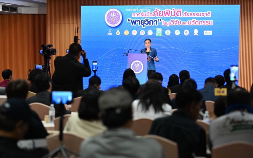 เมื่อวันที่ 26 ก.ค.2568 นางสาวสุดาวรรณ หวังศุภกิจโกศล รัฐมนตรีว่าการกระทรวงการอุดมศึกษา วิทยาศาสตร์ วิจัยและนวัตกรรม (อว.) เป็นประธานในพิธีแถลงข่าว “การรับมือภัยพิบัติ ภัยธรรมชาติ “พายุวิภา” ในมุมวิจัยและนวัตกรรม” โดยมี ดร.วิภารัตน์ ดีอ่อง ผู้อำนวยการสำนักงานการวิจัยแห่งชาติ (ผอ.วช.),ศาสตราจารย์ ดร.นายแพทย์สิริฤกษ์ ทรงศิวิไล ประธานกรรมการส่งเสริมวิทยาศาสตร์ วิจัยและนวัตกรรม,ศาสตราจารย์ รศ.ดร.สุจริต คูณธนกุลวงศ์ ผู้อำนวยการแผนงาน (Program Director) แผนงานเป้าหมายสำคัญตามยุทธศาสตร์ (ววน.) ด้านบริหารน้ำ (วช.) คณะผู้บริหาร นักวิจัย และสื่อมวลชน เข้าร่วม ณ ห้องประชุมจอมพลสฤษดิ์ ธนะรัชต์ อาคาร วช. 1 สำนักงานการวิจัยแห่งชาติ (วช.)