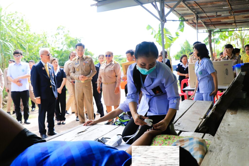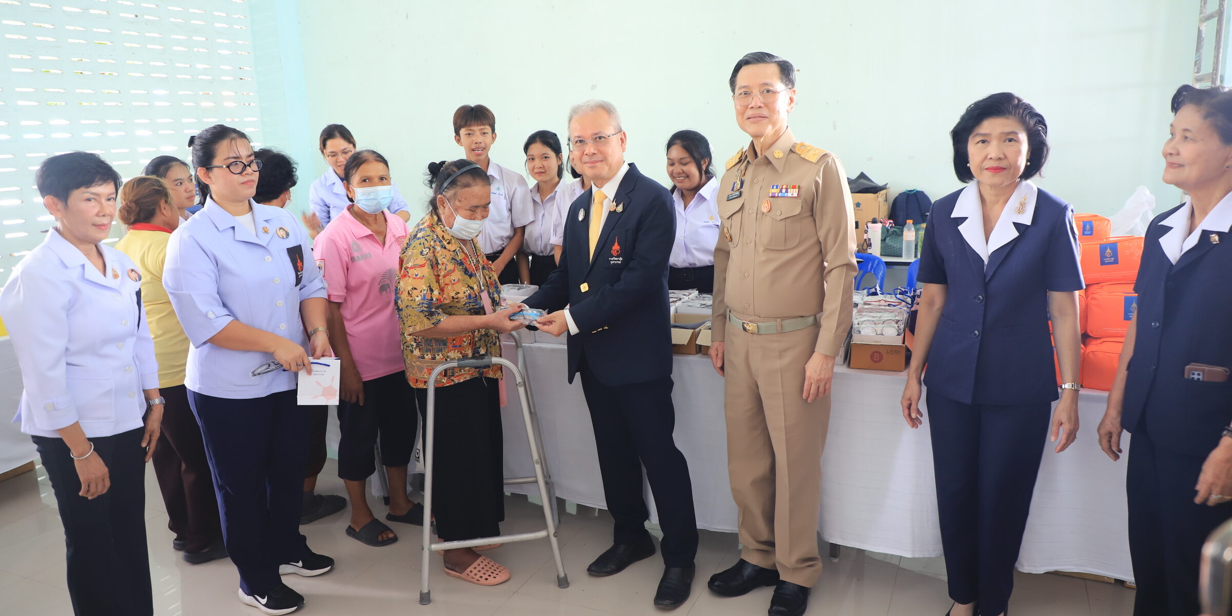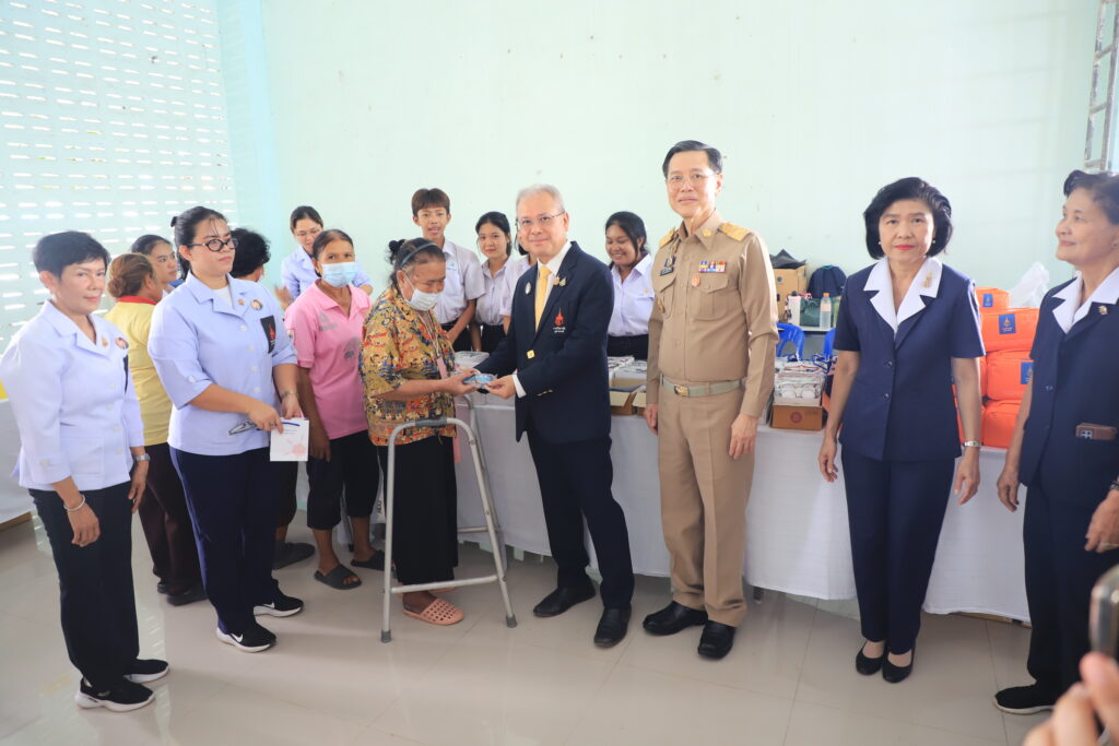 ให้กับโรงเรียนในพื้นที่ 10 โรงเรียน จำนวน 245 ใบ ซึ่งการออกหน่วยแพทย์ในครั้งนี้ เป็นการ ตรวจรักษาโรคทั่วไป ตรวจวัดสายตา และร่วมลงพื้นที่เยี่ยมบ้านพร้อมมอบสิ่งของพระราชทานแก่ผู้สูงอายุผู้พิการ และผู้ป่วยติดบ้านติดเตียง จำนวน 3 ราย โดยมี นายอำพล อังคภากรณ์กุล ผู้ว่าราชการจังหวัดลพบุรี นางสุวจี ศิริปัญโญ นายกเหล่ากาชาดจังหวัดลพบุรี นายแพทย์ปิยะเดช วลีพิทักษ์เดช นายแพทย์สาธารณสุขจังหวัดลพบุรี นายอำเภอสระโบสถ์ หัวหน้าส่วนราชการ ข้าราชการ และประชาชนที่มารับบริการ เข้าร่วมพิธีฯ