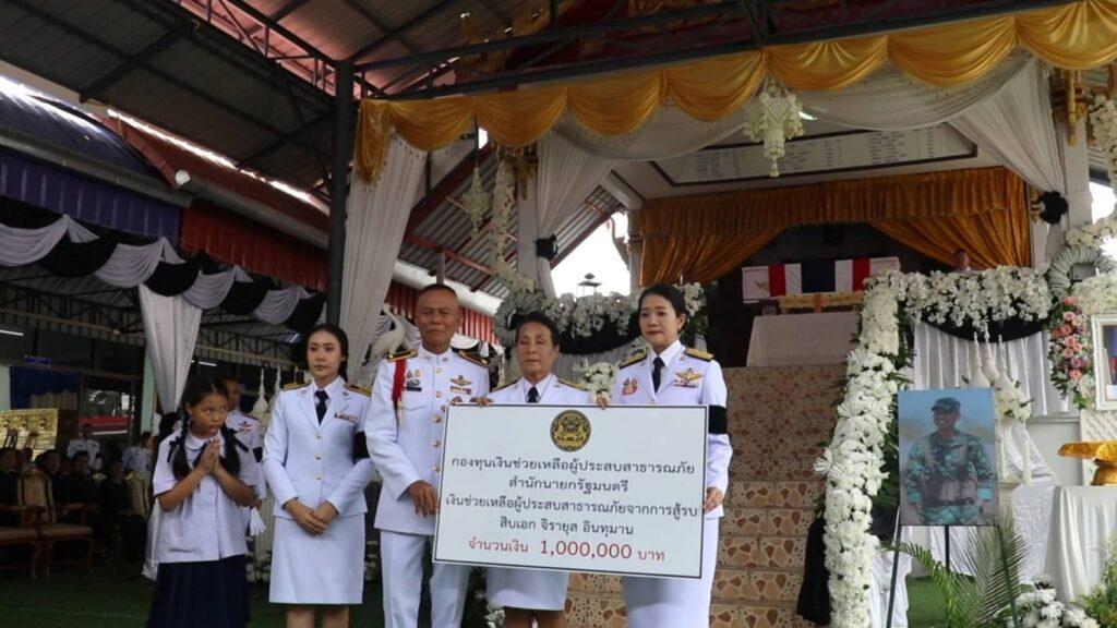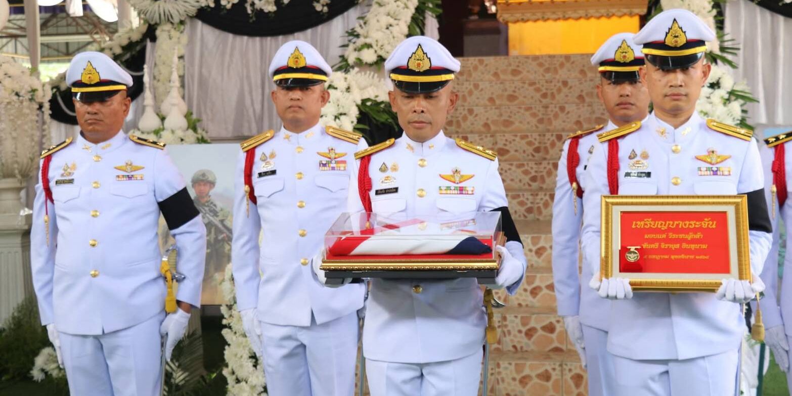 บรรยากาศภายในพิธีเปี่ยมด้วยความอาลัยอย่างสุดซึ้ง ภายใต้ความสำนึกในพระคุณและความกล้าหาญของสิบเอกจิรายุส อินทุมาน ผู้ปฏิบัติหน้าที่ด้วยความเสียสละ อุทิศชีวิตเพื่อปกป้องเอกราชของแผ่นดิน