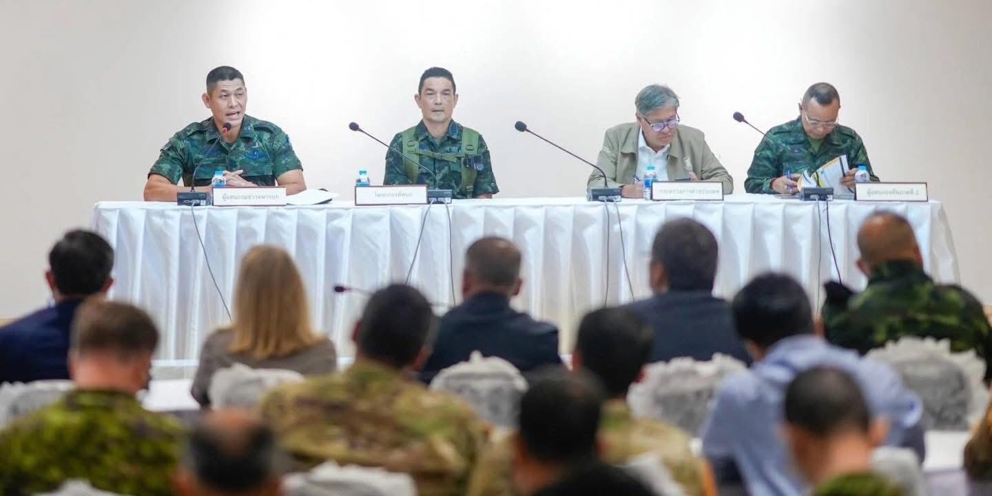 สรุปคำบรรยายอย่างเป็นทางการของฝ่ายไทย ชี้แจงสถานการณ์ความขัดแย้งตามแนวชายแดนไทย-กัมพูชา วันเวลา วันศุกร์ที่ 1 สิงหาคม พ.ศ. 2568 โดยมีผู้ร่วมแถลงข่าว ดังนี้.1. รัศม์ ชาลีจันทร์ : ผู้ช่วยรัฐมนตรีว่าการกระทรวงการต่างประเทศ2. พ.อ. พัฒนา พันธุ์มงคล : กรมข่าวทหารบก3. พล.ต. วินทัย สุวารี : โฆษกกองทัพบก4.พล.ต. นรธิป โพยนอก : รองแม่ทัพภาคที่ 2.เพื่อชี้แจงข้อเท็จจริงเกี่ยวกับสถานการณ์ชายแดนไทย–กัมพูชา ตลอดจนแสดงบทบาทของกองทัพไทยในการรักษาอธิปไตยและดำเนินการอย่างสอดคล้องกับกฎหมายระหว่างประเทศ และเน้นย้ำความตั้งใจของไทยในการแก้ปัญหาโดยสันติวิธีและผ่านกลไกทวิภาคี.ประเด็นสำคัญ.1. ลำดับเหตุการณ์และข้อเท็จจริง.ต้นปี 2568 – ก.ค. 2568: ฝ่ายกัมพูชาเริ่มใช้ยุทธวิธียั่วยุในหลายรูปแบบ เช่น นำพลเรือนเข้าพื้นที่พิพาท เผาสิ่งปลูกสร้างเชิงสัญลักษณ์ ขุดคูติดต่อ และลักลอบวางทุ่นระเบิดสังหารบุคคล (PMN-2) ในเขตไทย ทำให้ทหารไทยบาดเจ็บสาหัส 2 ราย.28 พ.ค. – เริ่มมีการปะทะด้วยอาวุธในพื้นที่ช่องบก.24 ก.ค. – กัมพูชาเปิดฉากยิงที่ปราสาทตาเมือนธม ตามด้วยการใช้ปืนใหญ่และจรวดหลายลำกล้อง BM-21 ยิงเข้าเป้าหมายพลเรือนไทยลึกจากชายแดน 10–30 กม..เป้าหมายที่ถูกโจมตีรวมถึงโรงพยาบาล ปั๊มน้ำมัน โรงเรียน ร้านสะดวกซื้อ และหมู่บ้านในจังหวัดสุรินทร์ ศรีสะเกษ บุรีรัมย์ และอุบลราชธานี ส่งผลให้มีพลเรือนเสียชีวิต 36 ราย (รวมเด็ก 1 ราย) และบาดเจ็บ 15 ราย อพยพราษฎรกว่า 150,000 คน.2. การตอบโต้ของฝ่ายไทย.ฝ่ายไทยดำเนินการภายใต้ หลัก Right of Self-Defense ตามมาตรา 51 ของกฎบัตรสหประชาชาติ การตอบโต้มีเป้าหมายจำกัดเฉพาะเป้าหมายทางทหารของกัมพูชา ไม่มุ่งรุกล้ำหรือโจมตีพื้นที่พลเรือน ย้ำหลัก Necessity และ Proportionality ตามกฎหมายระหว่างประเทศ.ไทยหลีกเลี่ยงการโจมตีจุดที่ฝ่ายกัมพูชาตั้งอาวุธในชุมชน แม้เป็นเป้าหมายทางทหาร เพื่อไม่ให้เกิดความสูญเสียแก่พลเรือน.3. สถานการณ์ปัจจุบัน.28–30 ก.ค. 68 – แม้มีการตกลงหยุดยิงที่มาเลเซีย แต่ฝ่ายกัมพูชายังละเมิดข้อตกลง ยิงปืนใส่หลายจุดใน จ.อุบลราชธานี และ จ.ศรีสะเกษ.31 ก.ค.68 – ตรวจพบฝ่ายกัมพูชาเสริมกำลังและใช้โดรนบินล้ำเข้ามาในเขตแดนไทยอย่างมีนัยสำคัญ.4. การตอบโต้ข้อกล่าวหาของกัมพูชา.ข้อกล่าวหา – ไทยรุกรานและใช้กำลังเกินขอบเขต.ข้อเท็จจริง – ไทยปฏิบัติภายใต้กฎหมายสากลและไม่ได้รุกรานก่อน.ข้อกล่าวหา – ใช้อาวุธเคมี.ข้อเท็จจริง – เป็นเท็จโดยสิ้นเชิง ไทยเป็นภาคีอนุสัญญา CWC และภาพที่เผยแพร่มาจากเหตุการณ์ในสหรัฐฯ ปี 2022.ข้อกล่าวหา: ใช้ F-16 และ MK-84.ข้อเท็จจริง: ไทยใช้เฉพาะอาวุธจำเป็นและเฉพาะเป้าหมายทางทหาร ภ