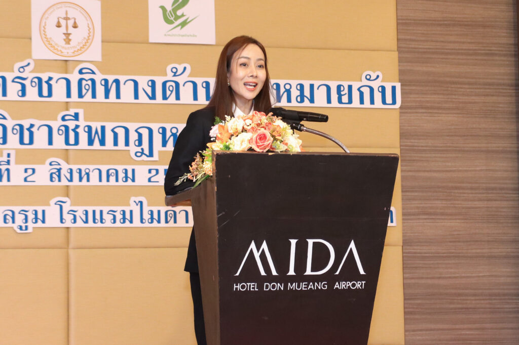 ทางด้าน นางสาวณัฏฐิณิชา ศรีจันทร์ รองประธานมูลนิธิธรรมาภิบาลและต่อต้านทุจริตคนที่ 1 กล่าวถึงที่มาของ “โครงการยุทธศาสตร์ชาติด้านกฏหมายกับองค์กรวิชาชีพด้านกฏหมาย” ในครั้งนี้ว่า เป็นการยกระดับการทำงานขององค์กรวิชาชีพกฏหมายที่ทำงานในแนวทางที่ต่างกัน เราจัดทัพยุทธศาสตร์นี้ขึ้นเพื่อให้การทำงานขององค์กรวิชาชีพกฏหมายและนักกฏหมายจะประสานการทำงานไปในทิศทางเดียวกัน เพื่อประโยชน์ของสังคมไทย และประชาชนทั่วไปที่จะเข้าถึงกฏหมายได้ดียิ่งขึ้น