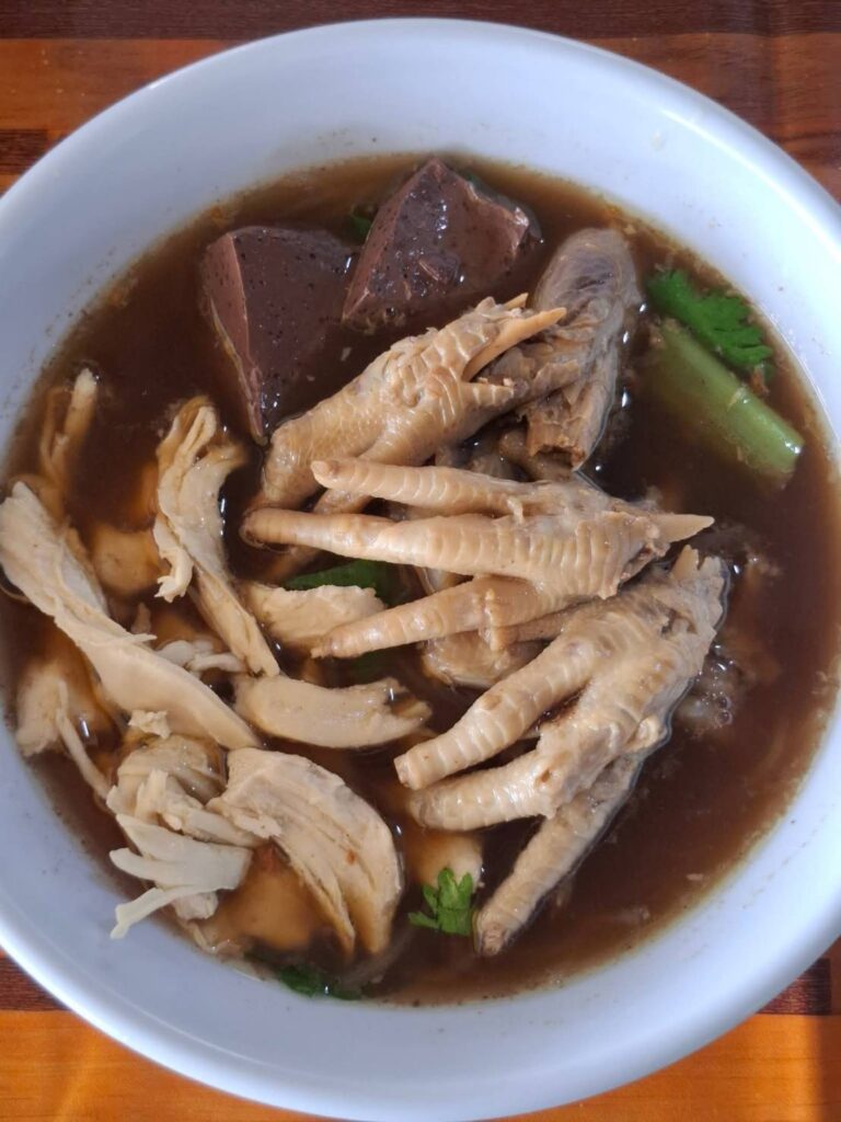เลือดได้แบบไม่ต้องยั้ง แถมมีผักสดกินแกล้มแก้เลี่ยนไม่อั้นอีก ซดน้ำซุปหอม ๆ ให้โล่งคอ หรือใครเป็นสายแซ่บก็ปรุงรสจัดจ้านได้ตามชอบเลย ข้าวขาหมูที่นี่รสจัดจ้านน้ำจิ้มถึงเครื่องหมูไม่แข็งแต่นุ่มละลายในปากเลยทีเดียว