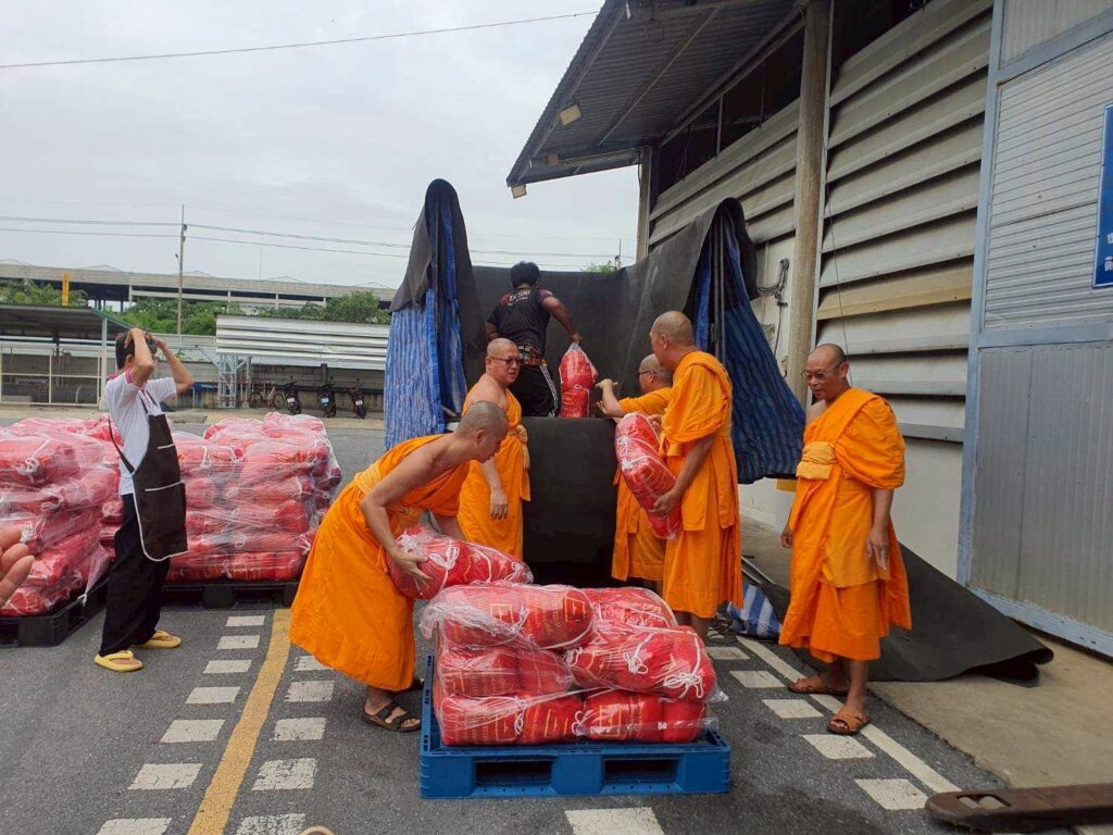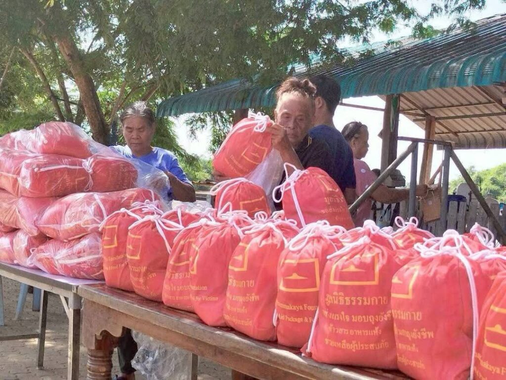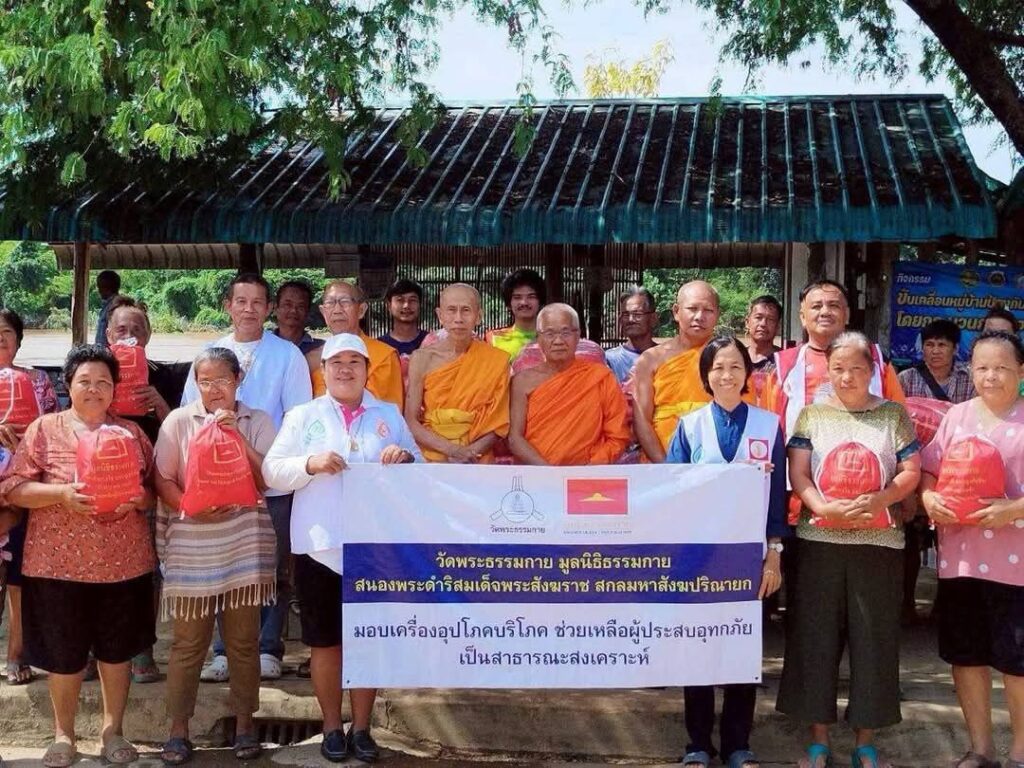 โดยมีพระธีรพัฒน์ กุลธีโร หัวหน้ากองประสานงานศูนย์ส่งเสริมศีลธรรม เป็นตัวแทนวัดพระธรรมกาย มูลนิธิธรรมกาย และกัลยาณมิตรจากทั่วโลก ส่งมอบถุงยังชีพให้แก่ศูนย์ส่งเสริมศีลธรรมในพื้นที่ประสบภัย ณ ศาลามหาทานบารมี โรงครัว 71 ปี วัดพระธรรมกาย จังหวัดปทุมธานี เพื่อนำไปแจกจ่ายต่อในพื้นที่ที่ได้รับผลกระทบ ในยามที่ภัยธรรมชาติพรากความมั่นคงไปจากชีวิต วัดและชุมชนคือพลังทางสังคมที่ยังคงยื่นมือเข้าช่วยเหลือ น้ำใจที่หลั่งไหลจากผู้ให้จึงเปรียบเสมือนสายน้ำแห่งเมตตา ที่หล่อเลี้ยงหัวใจผู้ประสบภัยให้ก้าวข้ามช่วงเวลาแห่งความยากลำบากไปด้วยกัน
