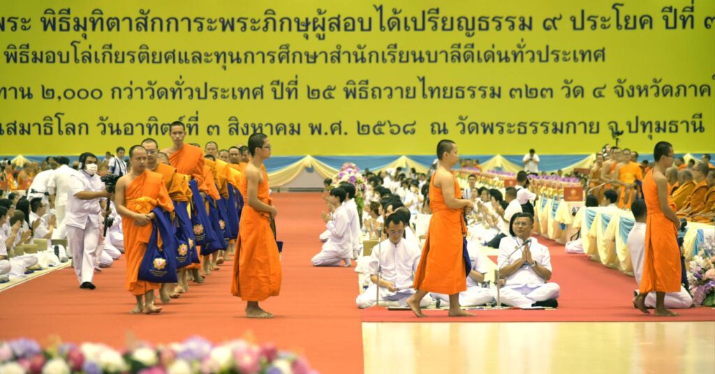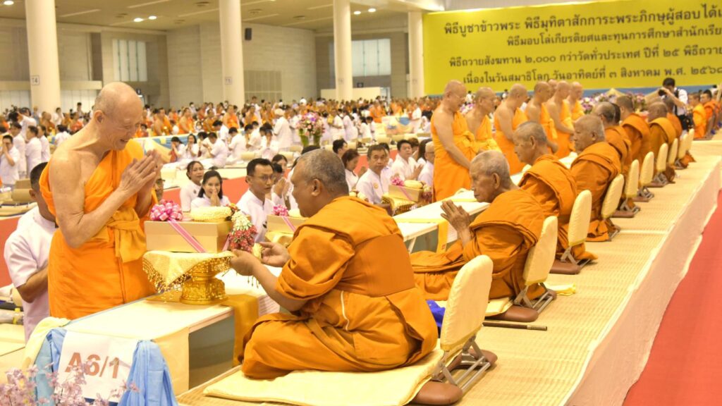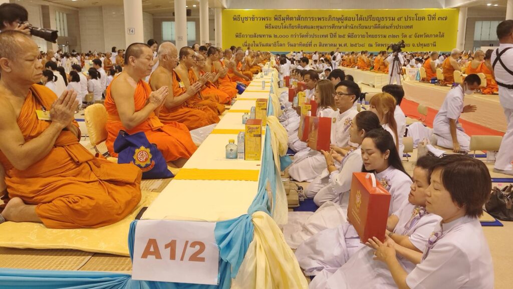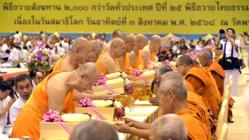 วันที่ 3 สิงหาคม 2568 วัดพระธรรมกาย อ.คลองหลวง จ.ปทุมธานี จัดงานบุญใหญ่ 5 งาน เนื่องใน วันสมาธิโลก (World Meditation Day) ต้อนรับพุทธศาสนิกชนจากนานาชาติ กิจกรรมสำคัญ ได้แก่ พิธีบูชาข้าวพระ , พิธีมุทิตาสักการะพระภิกษุผู้สอบได้เปรียญธรรม 9 ประโยค ปีที่ 37 , มอบโล่เกียรติยศและทุนการศึกษาแก่สำนักเรียนบาลีดีเด่นทั่วประเทศ ปีที่ 21 , ถวายสังฆทานแด่คณะสงฆ์ 2,000 วัดทั่วประเทศ ปีที่ 25 , ถวายไทยธรรมแด่คณะสงฆ์ 323 วัดใน 4 จังหวัดชายแดนใต้ ปีที่ 21 (ครั้งที่ 180) พร้อมมอบทุนหนุนแรงใจช่วยครูใต้ ครั้งที่ 143