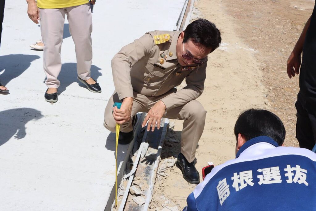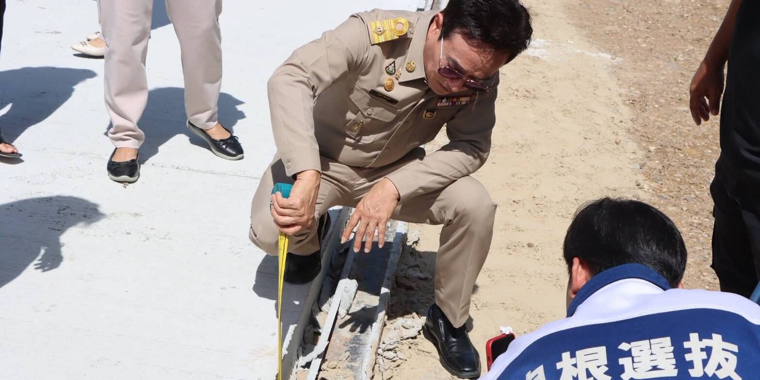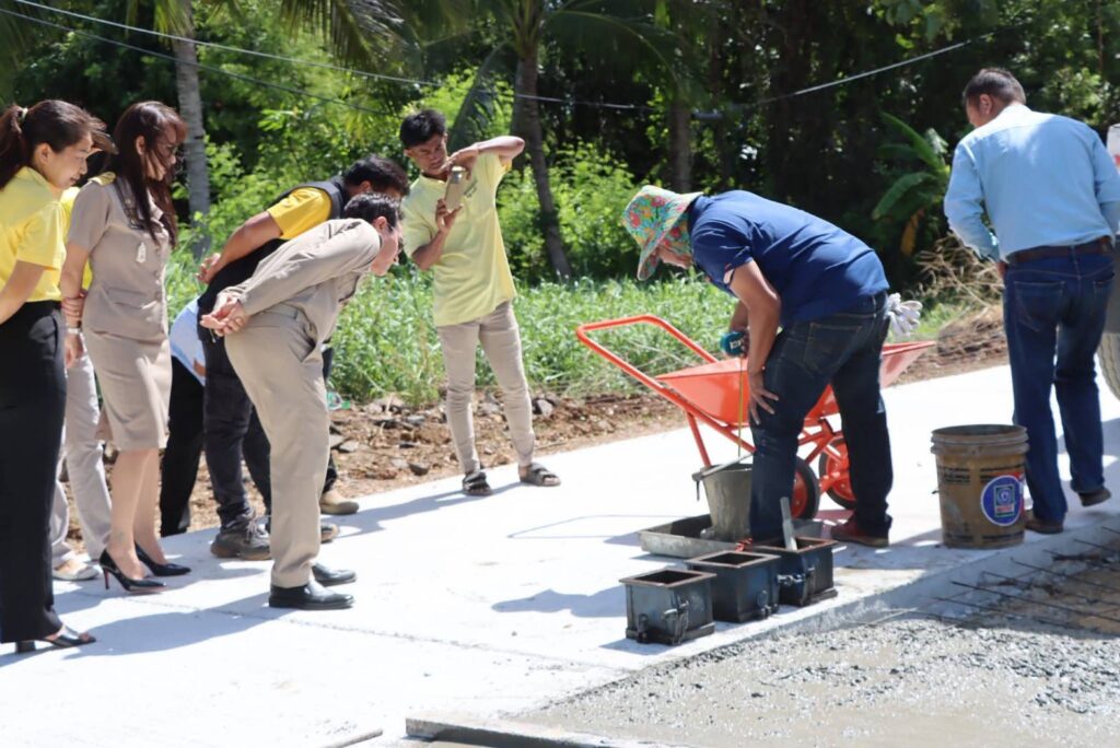 นายกอุดม จูงมือ สจ. ด้วง ลงมือตรวจวัดมาตรฐาน การก่อสร้างถนนตามมาตรฐาน