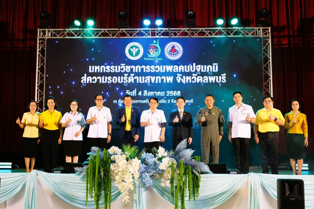 วันที่ 4 สิงหาคม 2568 ณ ห้องประชุมกานตรัตน์ กองบิน 2 จังหวัดลพบุรี ดร.นายแพทย์ปรีชา เปรมปรี ผู้ตรวจราชการกระทรวงสาธารณสุข เขตสุขภาพที่ 4 เป็นประธานเปิดงานประชุมมหกรรมวิชาการรวมพลคนปฐมภูมิสู่ความรอบรู้ด้านสุขภาพ จังหวัดลพบุรี ประจำปีงบประมาณ พ.ศ. 2568 โดยมี ว่าที่ร้อยตรี ทรงพล แป้นแก้ว รองผู้ว่าราชการจังหวัดลพบุรี นายแพทย์อดิสรณ์ วรรธนะศักดิ์ รองอธิบดีกรมสนับสนุนบริการสุขภาพ พร้อมด้วย นายแพทย์ปิยะเดช วลีพิทักษ์เดช นายแพทย์สาธารณสุขจังหวัดลพบุรี นาวาอากาศเอกเทพพนม สุวรรณสาร ผู้บังคับการกองบิน 2 ผู้บริหารโรงพยาบาล บุคลากรสาธารณสุข อาสาสมัครสาธารณสุขประจำหมู่บ้านหน่วยงานภาคเอกชน ภาคประชาสังคม และทีมผู้จัดประชุม จำนวนทั้งสิ้น 505 คน