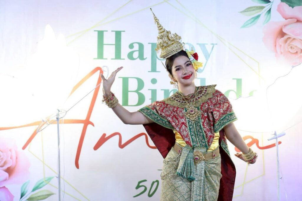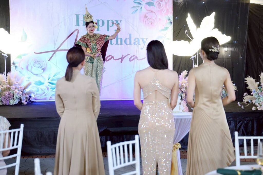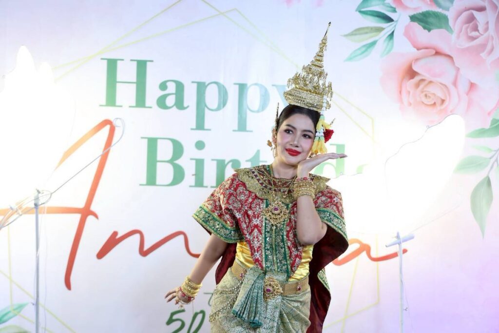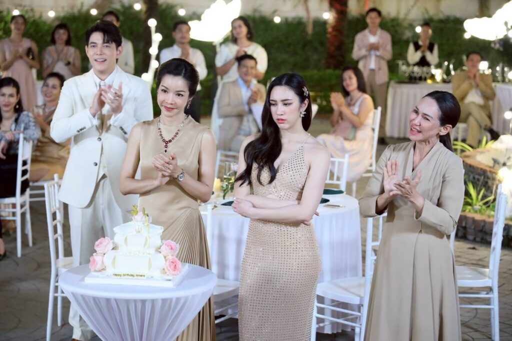 ฉากนี้ผู้จัดฯ ผู้กำกับฯ และทีมงานแท็กมือเนรมิตงานวันเกิดของ “อมรา” ให้ยิ่งใหญ่สมฐานะความเป็นเจ้าของร้านจิวเวอรี่แถวหน้าของเมืองไทย โดยใช้ธีม “ผีเสื้อ” ที่ส่องสว่างโบยบินภายในงาน สวยงามมาก รวมทั้งเวที แสง สี เสียงก็จัดเต็ม รวมทั้งนักแสดงหลัก และนักแสดงสมทบก็ขนกันมาเข้าฉาก เพื่อความสมจริงและยิ่งใหญ่สุดๆ ไปเลย