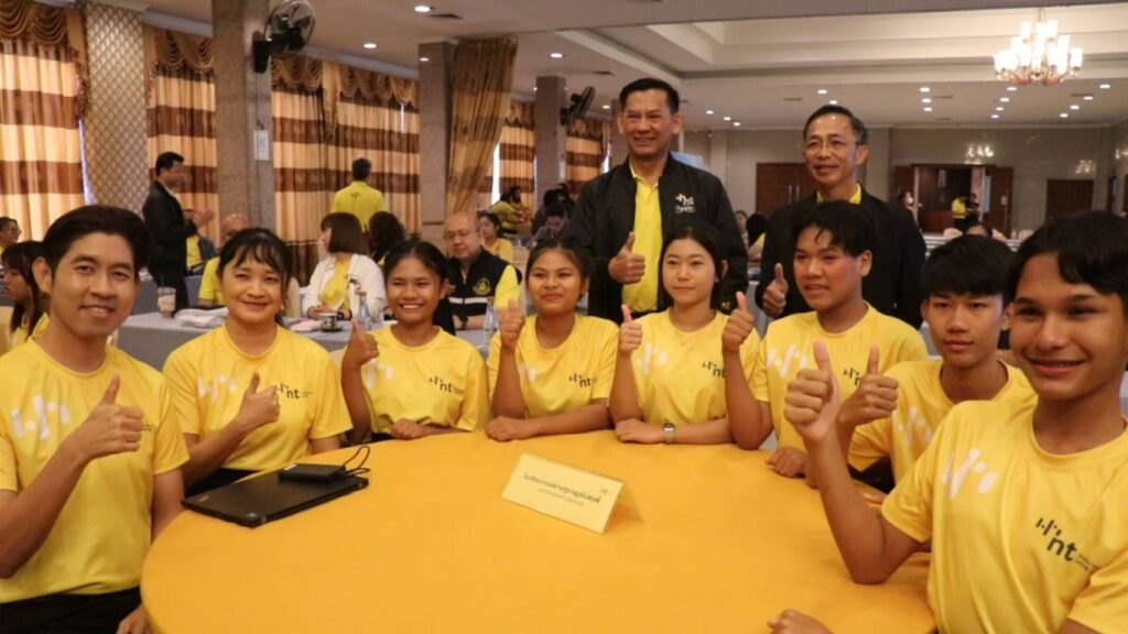 วันที่ 6 สิงหาคม 2568 เวลา 9.45 น.บริษัท โทรคมนาคมแห่งชาติ จำกัด (มหาชน) หรือ NT โดยกลุ่มขายและปฏิบัติการลูกค้า ภาคกลาง (กน.) จัดกิจกรรมโครงการเพาะพันธุ์ดี NT Youth Club ภาคกลาง ประจำปี 2568 ณ โรงแรมโกลเด้นดราก้อน รีสอร์ท อำเภอเมือง จังหวัดสิงห์บุรี โดยมีนายสมยศ ธนพิรุธธร รองกรรมการผู้จัดการใหญ่สายงานขายและปฏิบัติการลูกค้า 1 เป็นประธานกล่าวเปิดงานพร้อมด้วยคณะผู้บริหาร บริษัท โทรคมนาคมแห่งชาติ จำกัด (มหาชน)และหัวหน้าส่วนงานราชการในพื้นที่จังหวัดสิงห์บุรี เข้าร่วมพิธีเปิดโครงการ มุ่งเน้นความสำคัญของเทคโนโลยีดิจิทัล ในการเข้ามามีบทบาทด้านการพัฒนาชุมชนและสังคม จึงได้นำเทคโนโลยี AI มาใช้เป็นเครื่องมือสำคัญในการผลักดันและขับเคลื่อนชุมชนสู่โลกดิจิทัลอย่างยั่งยืน โดยมีการจัดอบรมให้ความรู้เบื้องต้นเกี่ยวกับเทคโนโลยี AI และการส่งผลงานประกวดคลิปวีดีโอ ซึ่งถือเป็นส่วนหนึ่งในการส่งเสริมและสนับสนุนสินค้า หรือผลิตภัณฑ์ของชุมชนผ่านสื่อออนไลน์ได้อย่างมีประสิทธิภาพ ตามโครงการเพาะพันธุ์ดี NT Youth Club ภาคกลาง ประจำปี 2568 ภายใต้กิจกรรม “NextGen AI : ขับเคลื่อนชุมชนสู่โลกดิจิทัล” โดยมีวัตถุประสงค์การจัดกิจกรรมดังนี้