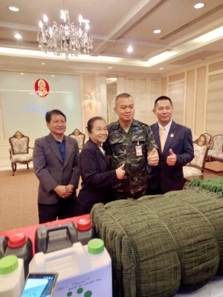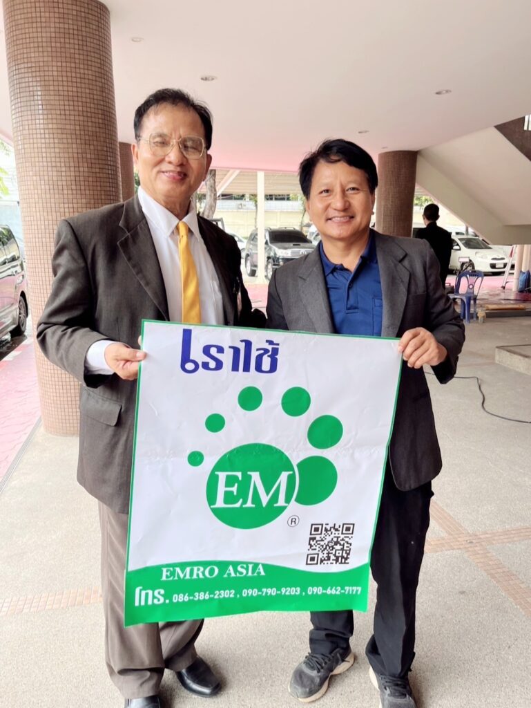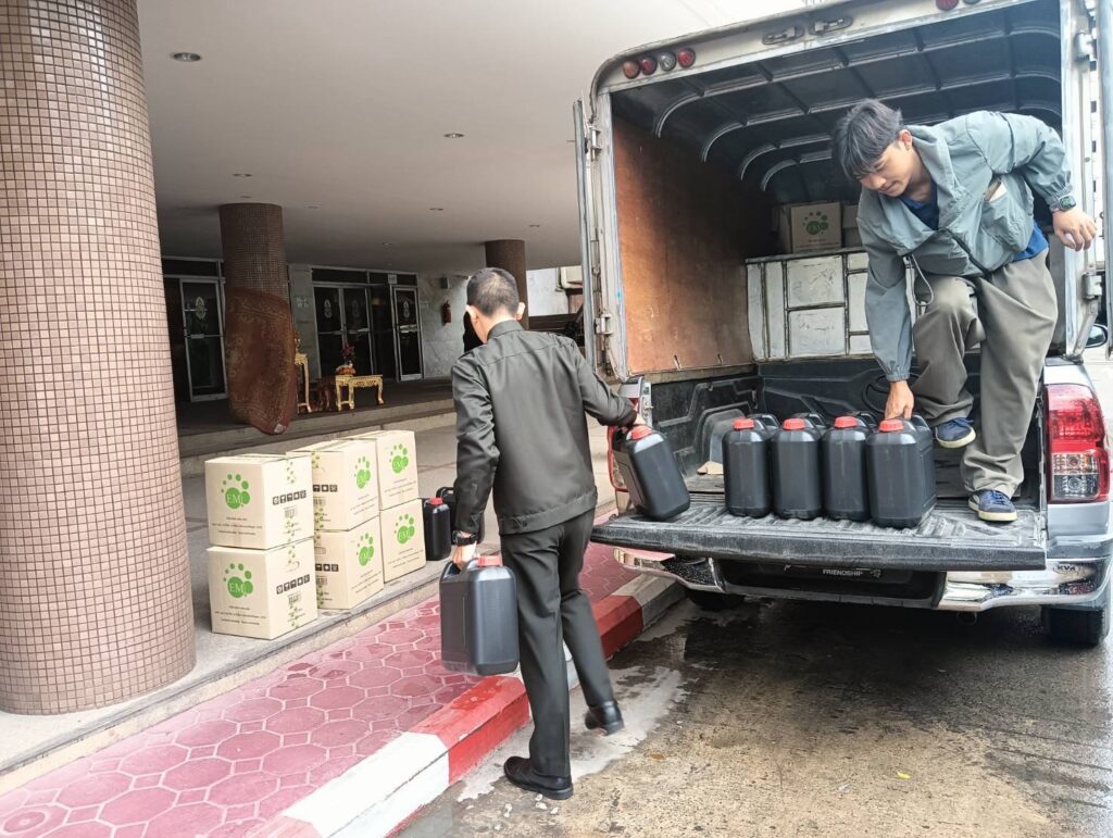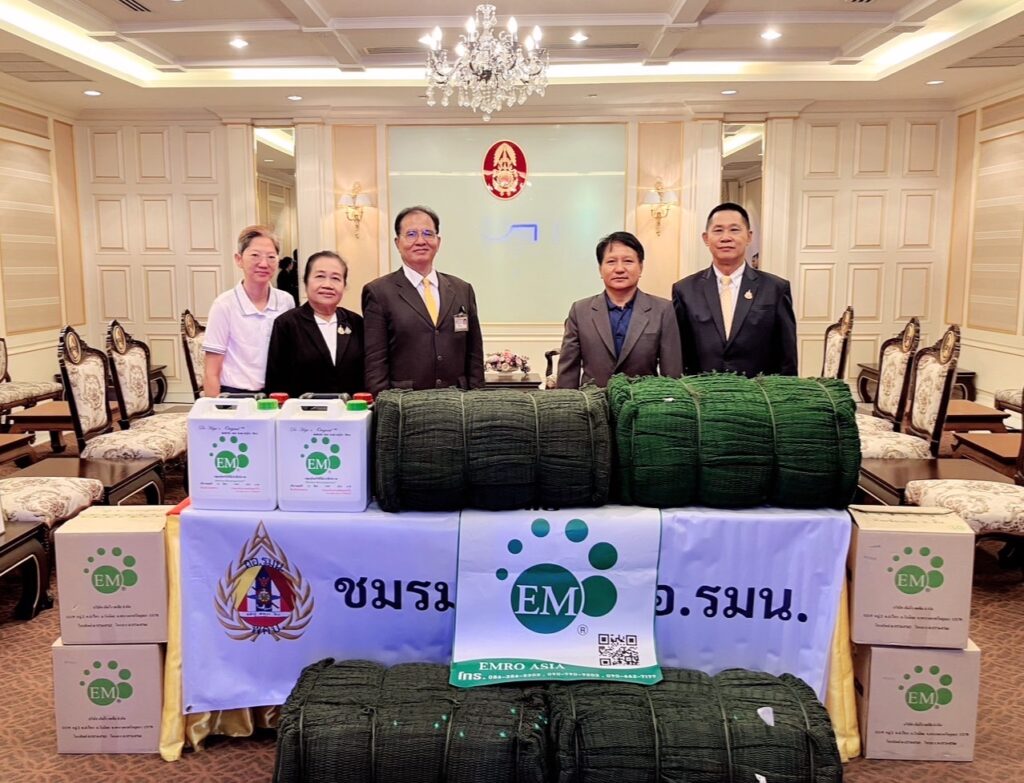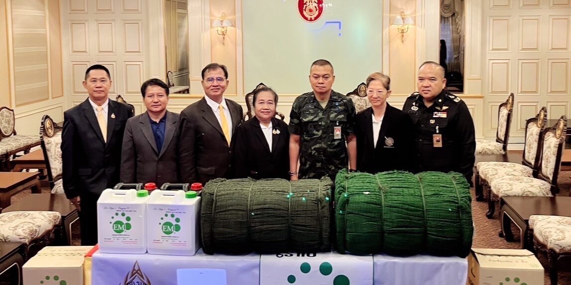วันที่ 7 สิงหาคม 2568 ณ กองบัญชาการกองทัพบก ถนนราชดำเนินนอก เขตพระนคร กรุงเทพมหานคร ดร.อัคราดร ปัญญาเพ็ญ นายกสภานักวิชาการฯ, พลตรีหญิง ดาวใจ เจิมเจิดพล อุปนายกสภานักวิชาการฯ (1) และคณะนักวิชาการประจำคณะกรรมการสมัชชามวลชนเพื่อความมั่นคงภายใน กองอำนวยการรักษาความมั่นคงภายในราชอาณาจักร (สช.มน.กอ.รมน.) มอบจุลินทรีย์ที่มีประสิทธิภาพ หรืออีเอ็ม (EM) จำนวน 10 ลัง (200 ลิตร) พร้อมกากน้ำตาล จำนวน 10 แกลลอน โดยได้รับการอนุเคราะห์จาก บริษัท เอ็มโร เอเชีย จำกัด เพื่อสนับสนุนโครงการบำบัดน้ำเสียและการกำจัดกลิ่นเหม็นจากซากศพและป้องกันเชื้อโรคระบาด ให้แก่หน่วยทหารและประชาชนในพื้นที่ชายแดนไทย-กัมพูชา โดยมี พลโท บุญสิน พาดกลาง แม่ทัพภาคที่ 2 เป็นผู้แทนกองทัพบกรับมอบเป็นที่เรียบร้อย