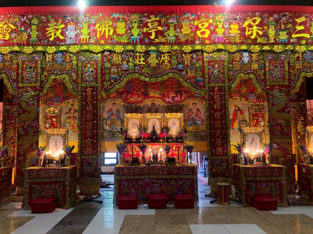 โดยมี นายสรกฤษณ์ ปิยมนูรังษี นายกกิตติมศักดิ์สมาคมนักธุรกิจสัมพันธ์แห่งประเทศไทย ถวายภัตตาหารเพล (เจ) แด่พระสงฆ์จีนซึ่งครั้งนี้ได้รับความเมตตาจากท่านพระคณาจารย์จีนธรรมวชิรานุวัตร (เย็นงี้) เจ้าอาวาสวัดมังกรกมลาวาส (วัดเล่งเน่ยยี่) เข้าร่วมในพิธี ก่อนที่ คณะโรงเจซำเป้าอัมพวา จะสาธยายพระสูตรพระอวโลกิเตศวร โพธิสัตว์ เสริมศิริมงคล พร้อมส่งเสด็จองค์สัมมาสัมพุทธเจ้าและสิ่งศักดิ์สิทธิ์ ปิดท้ายด้วย พิธีปิดกลอง เป็นอันเสร็จพิธีการ และรับประทานอาหารร่วมกัน (โต๊ะจีน) โดยพิธีการทั้งหมดได้เริ่มขึ้นตั้งแต่เวลา 8.20น. ถึงเวลา 15.30 น.