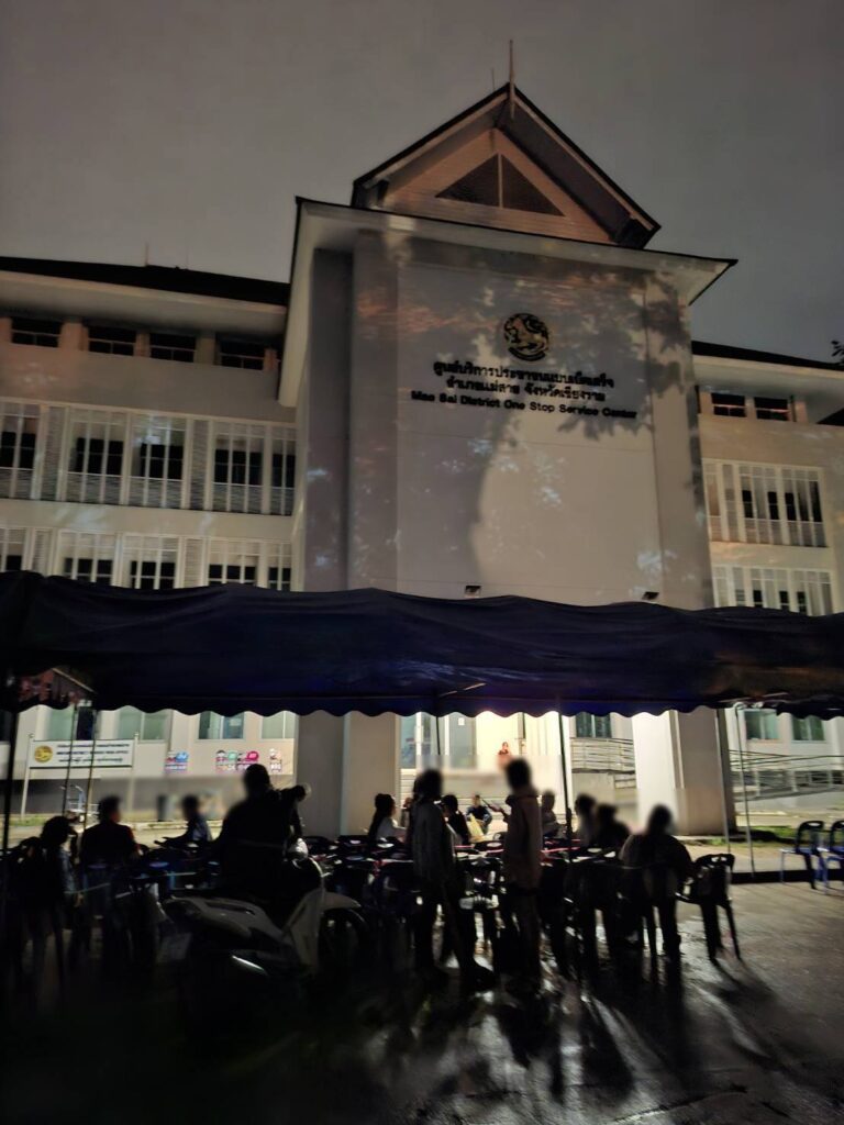 เมื่อกลางดึกของวันที่ 6 ส.ค.68 เวลา 22.00 น. ดึกๆดื่นๆ ไม่หลับไม่นอน กลุ่มชาติพันธุ์แม่สาย จอง 150 คิวเก้าอี้เพื่อยื่นเอกสารขอต่างด้าวรอจนถึงพรุ่งนี้เช้า