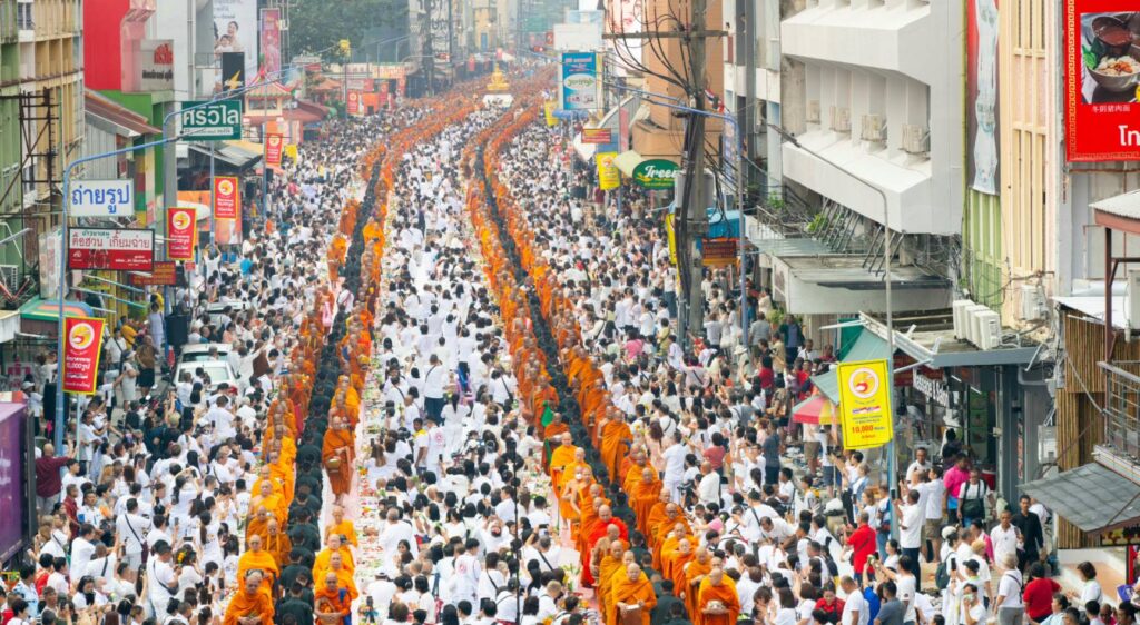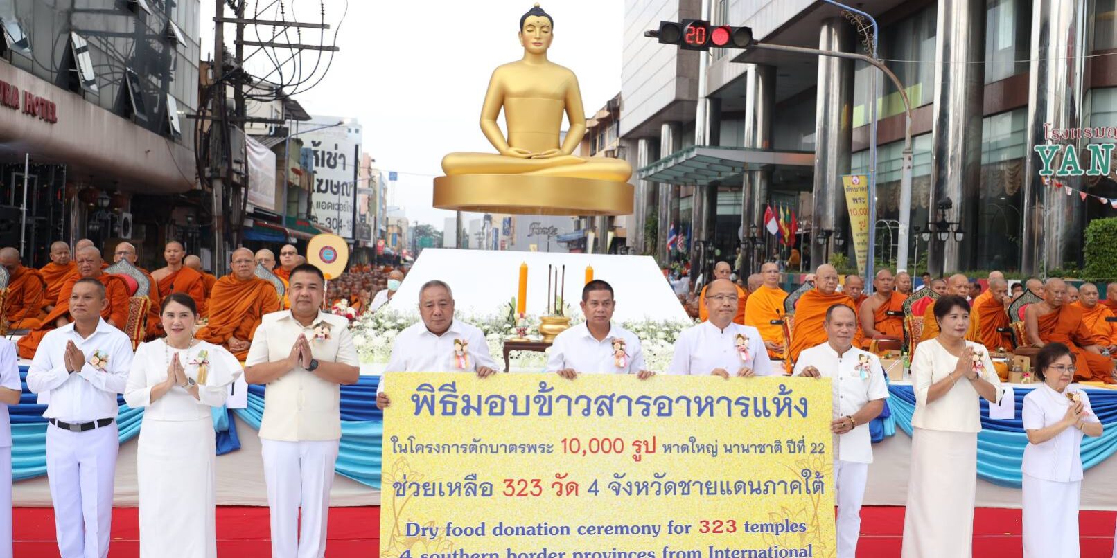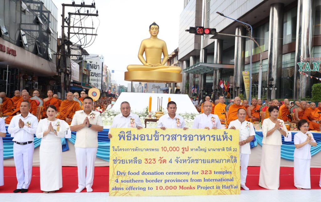 วัดพระธรรมกาย จังหวัดปทุมธานี ร่วมกับหลายภาคส่วน จัดพิธีตักบาตรพระนานาชาติ 10,000 รูป ครั้งที่ 22 บนถนนนิพัทธ์อุทิศ 3 ใจกลางเมืองหาดใหญ่ จังหวัดสงขลา โดยมีพระสงฆ์จาก 4 ประเทศ ได้แก่ ไทย มาเลเซีย สิงคโปร์ และอินโดนีเซีย ร่วมบิณฑบาต