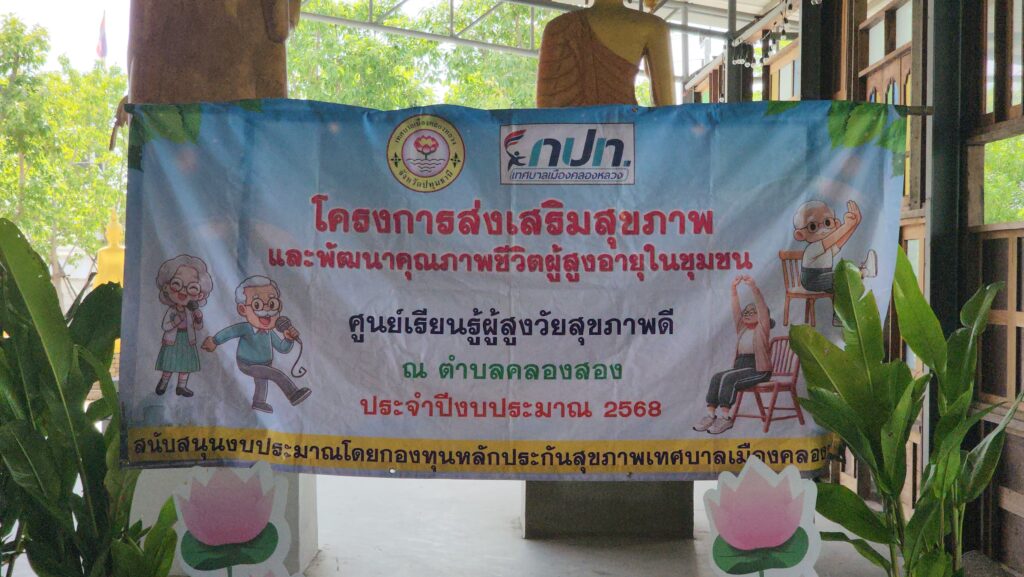 เมื่อวันที่ 12 สิงหาคม 2568 ที่ศูนย์เรียนรู้ผู้สูงวัยสุขภาพดี ศูนย์ปฏิบัติธรรมเบญจมบพิตรธรรมสถาน ต.คลองสอง อ.คลองหลวง จ.ปทุมธานี เทศบาลเมืองคลองหลวง โดย กองทุกหลักประกันสุขภาพ เทศบาลเมืองคลองหลวง จัด โครงการส่งเสริมสุขภาพและพัฒนาคุณภาพชีวิตผู้สูงอายุในชุมชน ขึ้น โดยได้รับเกียรติจาก นายยุทธศักดิ์ ชูประเสริฐ นายกเทศมนตรีเมืองคลองหลวง พร้อมด้วย นายทองสุก แสนจักร สมาชิกสภา อบจ.เขตที่ 3 อ.คลองหลวง นางสาวพรปริญญา ศรีจันทร์ สมาชิกสภา อบจ.เขตที่ 5 อ.คลองหลวง นายสัญชาติ คุระนันท์ สมาชิกสภา อบจ.เขตที่ 7 อ.คลองหลวง รองนายก ทม.คลองหลวง คณะผู้บริหาร หัวหน้าส่วนราชการ และ นักเรียนผู้สูงวัย เข้าร่วมงานกว่า 300 คน