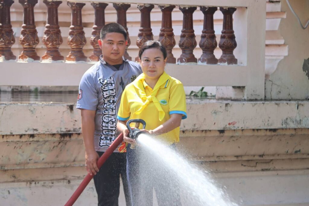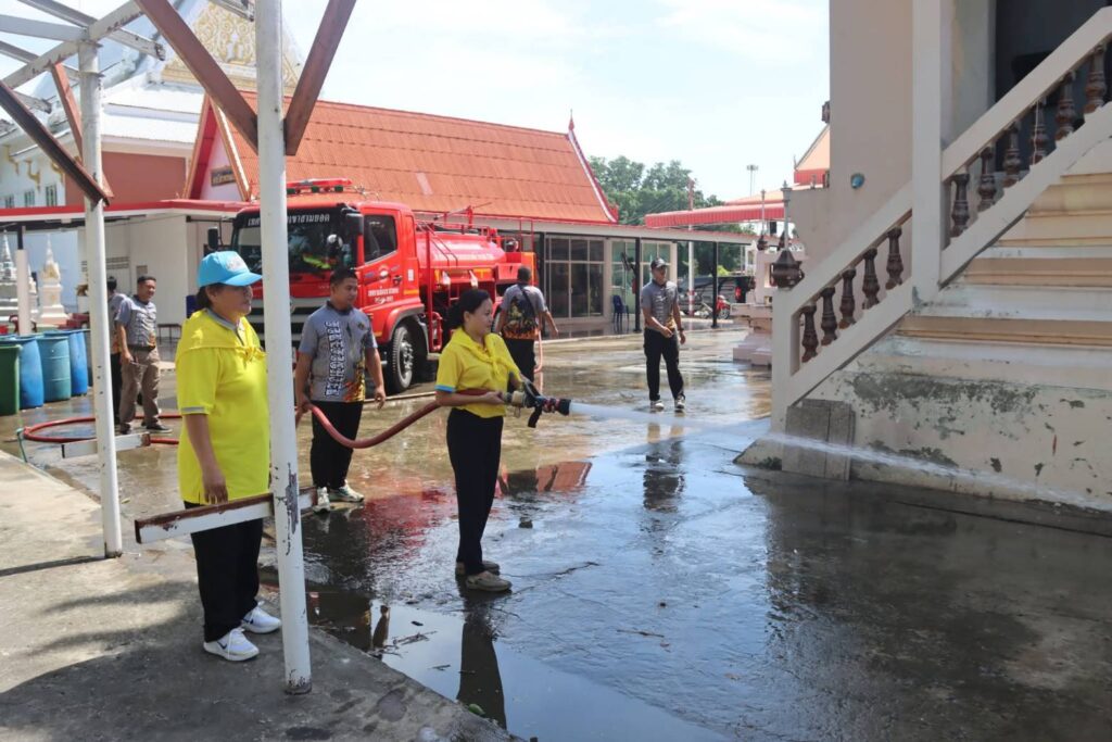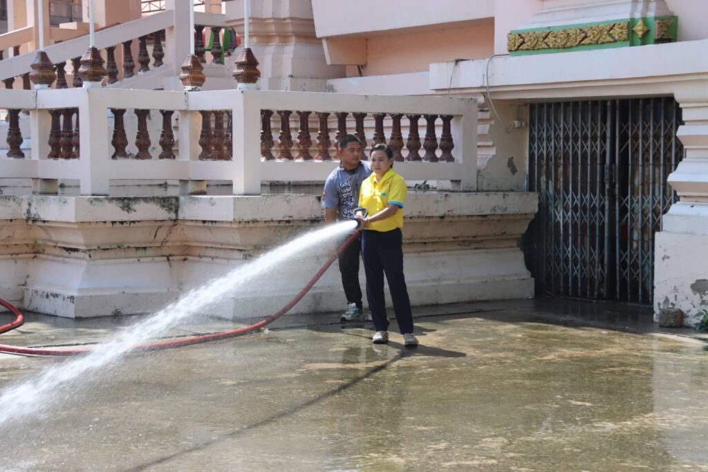 พร้อมด้วยคณะผู้บริหาร หัวหน้าส่วนราชการ พนักงานเทศบาล คณะครู ประธานชุมชน นักเรียนโรงเรียน ศพด.ในสังกัด เจ้าหน้าที่กลุ่ม อสม.และ อถล.เข้าร่วมกิจกรรมจิตอาสาในโครงการจิตอาสา Big Cleaning Day ภายใต้โครงการวัด ประชา รัฐ สร้างสุข เพื่อพัฒนาความสะอาด กวาดลานวัด และฉีดล้างภายในบริเวณ ศาสนสถาน โบสถ์ และถนน ให้มีความสะอาดและเป็นระเบียบเรียบร้อย ณ วัดดงสวอง (ใหม่) ตำบลเขาสามยอด อำเภอเมืองลพบุรี จังหวัดลพบุรี