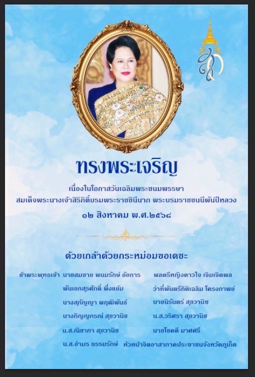 เนื่องในวันมหามงคล ๑๒ สิงหาคม วันแม่แห่งชาติ วันคล้ายวันพระราชสมภพของ สมเด็จพระนางเจ้าสิริกิติ์ พระบรมราชินีนาถ พระบรมราชชนนีพันปีหลวง. เป็นวันที่ลูก ๆ ได้แสดงออกถึงความรักและระลึกถึงพระคุณของแม่