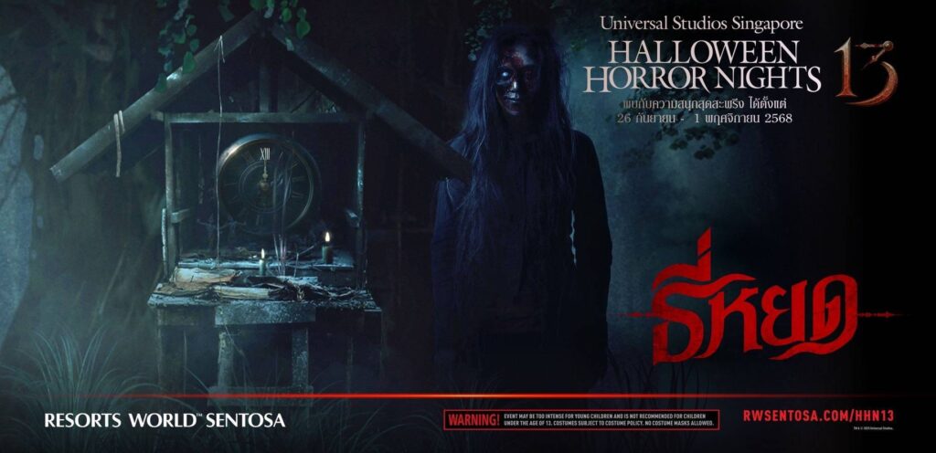 นี่คือครั้งแรกที่ภาพยนตร์ไทยได้เข้าไปเป็นส่วนหนึ่งของกิจกรรมหลักในธีมพาร์กระดับโลก ที่หยิบเอาคาแรกเตอร์-ฉาก-ความเชื่อแบบไทยมาออกแบบใหม่ให้น่าขนลุกขั้นสุด! โดยงานนี้ถือเป็นส่วนหนึ่งของการปลุกกระแสภาคต่อ “ธี่หยด 3” ที่กำลังจะเข้าฉายในไทย 1 ตุลาคมนี้อีกด้วย