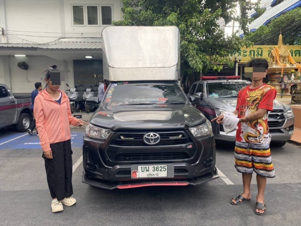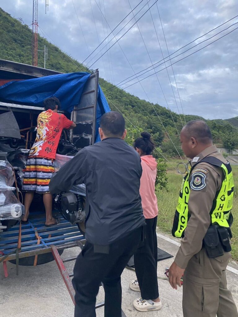 กระทั่งวันที่ 9 ส.ค.2568 เวลาประมาณ 23.30 น. เจ้าหน้าที่ตำรวจทางหลวงได้พบรถยนต์กระบะตู้ทึบคันดังกล่าวบริเวณหน่วยตำรวจทางหลวงเกาะหลัก ตำบลอ่าวน้อย อำเภอเมือง จังหวัดประจวบคีรีขันธ์ พบตัว ผู้ต้องหาทั้ง 2 ราย โดยมีนายสรชนหรือแต้ม นาคศรี เป็นคนขับพร้อใ นางสาวเจนจิราหรือเจน พรมทอง อายุ 30 ปี ภรรยา และของกลาง รถ จยย. ดังกล่าว รวม 5 คันซุกซ่อนไว้ท้ายกระบะ