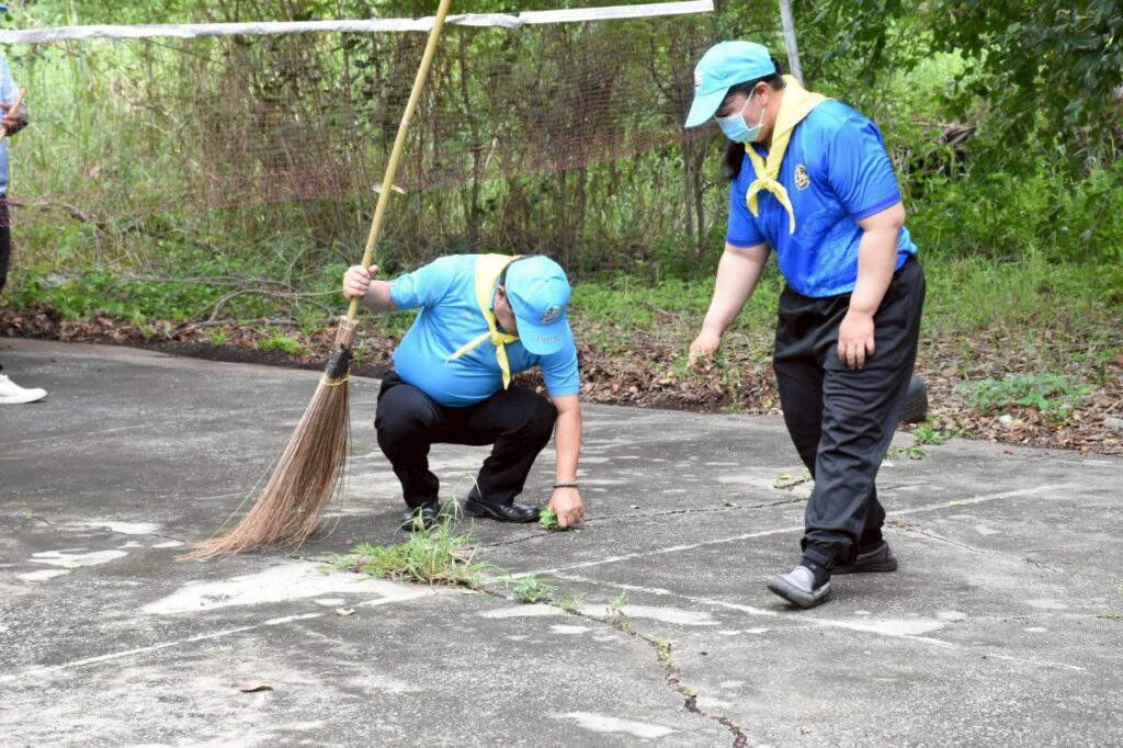 ในพื้นที่ และเจ้าหน้าที่ที่เกี่ยวข้อง ร่วมกันทำความสะอาด กวาดพื้น ตัดหญ้า ปรับปรุง