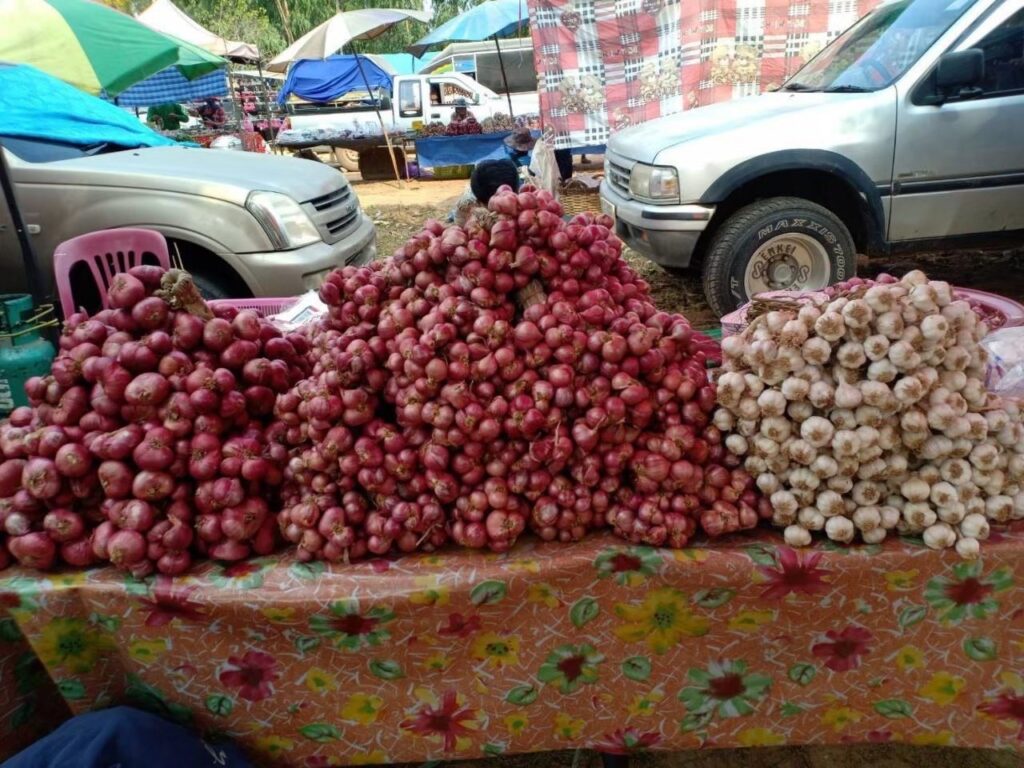 ด้านสถานการณ์การผลิตปี 2568 ของกลุ่มแปลงใหญ่ เกษตรกรจะทำการเพาะปลูกหอมแดง 2 รอบการผลิต โดยรอบแรกเพาะปลูกช่วงเดือนพฤศจิกายน–ธันวาคม ระยะเวลาเพาะปลูกจนถึงเก็บเกี่ยว 120 วัน เก็บเกี่ยวช่วงเดือนมกราคม-กุมภาพันธ์ และรอบที่ 2 เพาะปลูกช่วงเดือนมิถุนายน-กรกฎาคม ระยะเวลาเพาะปลูกจนถึงเก็บเกี่ยว 45 วัน เก็บเกี่ยวช่วงเดือนกรกฎาคม–สิงหาคม โดยผลผลิตหอมแดงทั้ง 2 รอบการผลิตรวมทั้งสิ้น 233 ตัน คิดเป็นผลผลิตเฉลี่ยประมาณ 1,500 กิโลกรัม/ไร่/ปี ซึ่งเกษตรกรนิยมเพาะปลูกช่วงฤดูหนาวมากที่สุด เนื่องจากสภาพอากาศเอื้ออำนวย หอมแดงชอบอากาศหนาวทำให้หัวหอมแดงมีขนาดหัวใหญ่ ได้ผลผลิตดี และน้ำหนักเยอะ โดยราคาหอมแดงคละ ณ วันที่ 9 สิงหาคม 2568 เฉลี่ยอยู่ที่ 25–27 บาท/กิโลกรัม ด้านการจำหน่าย ผลผลิตส่วนใหญ่ ร้อยละ 90 จำหน่ายให้กับพ่อค้าคนกลางจากต่างจังหวัด ได้แก่ จังหวัดศรีสะเกษ และผลผลิต ร้อยละ 10 เกษตรกรจำหน่ายให้ผู้บริโภคโดยตรง นอกจากนี้ ผลผลิตบางส่วนกลุ่มแปลงใหญ่ได้นำมาแปรรูปเป็นผลิตภัณฑ์ยาหม่องหอมแดง ในชื่อแบรนด์หอมมีชัย เพื่อจำหน่ายและนำไปใช้ภายในกลุ่ม ทั้งนี้ จากการจำหน่ายผลผลิตของกลุ่มแปลงใหญ่ สามารถสร้างรายได้เฉลี่ย 4,400,000 บาท/ปี รายได้เฉลี่ยสุทธิ (กำไร) 2,400,000 บาท/ปี