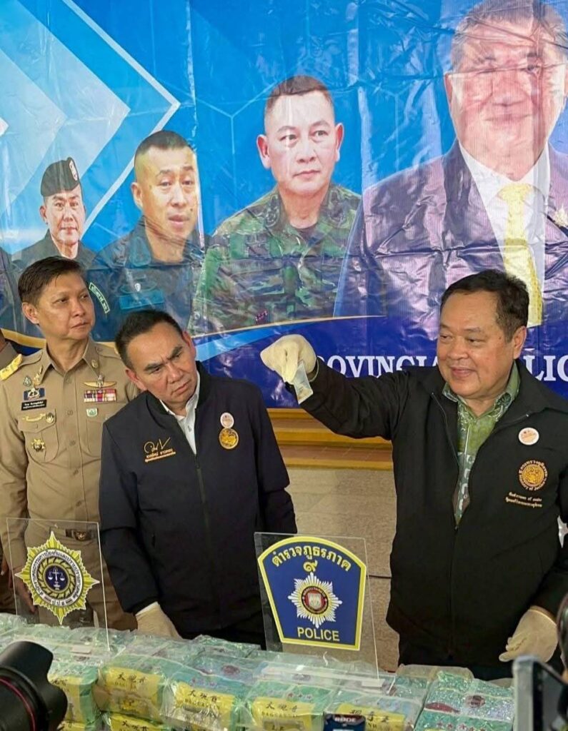 พ.ต.อ.ทวีฯ กล่าวว่า ขอชื่นชมการทำงานของฝ่ายความมั่นคงที่ได้บูรณาการร่วมกับทุกภาคส่วน นำมาสู่การจับกุมในครั้งนี้ โดยรายแรกเป็นการนำยาเสพติดจากชายแดนบริเวณสามเหลี่ยมทองคำเป้าหมายอยู่ที่ตากใบ ไอซ์ 900 กิโลกรัม รายที่ 2 เป็นการขยายเครือข่ายจากการจับยาไอซ์เมื่อครั้งที่แล้ว และยังมีทรัพย์สินอยู่จึงนำมาสู่การยึดทรัพย์ รัฐบาลให้ความสำคัญในเรื่องการแก้ไขปัญหายาเสพติดอย่างเด็ดขาดและเราจะแก้ให้ครบทุกวงจร ซึ่งรวมถึงกระท่อมและกัญชา ที่ตอนนี้ไม่มีกฎหมายควบคุมโดยตรง แต่ทั้งสองสิ่งก็เป็นภัยกับประชาชน จึงต้องขอชื่นชมผลงานของกองทัพภาคที่ 4 กอ.รมน. ตำรวจ ฝ่ายปกครอง เราจะไม่ปล่อยให้ยาเสพติดมาทำร้ายประชาชนอีก เพราะหากยาเสพติดอยู่ในพื้นที่ภาคใต้ชายแดน นอกจากทำให้ระบบเศรษฐกิจเสียหายแล้ว ยังจะไปก่อให้เกิดความไม่สงบในภาคใต้แล้วก็ทำให้ครอบครัวแตกแยกด้วย” พ.ต.อ.ทวีฯ กล่าว