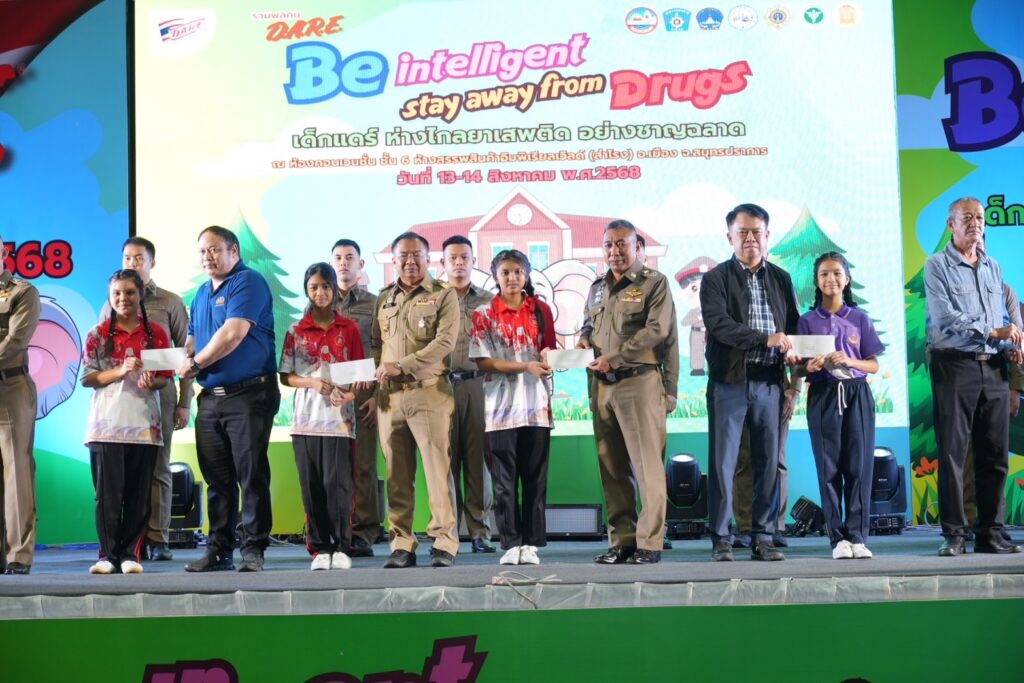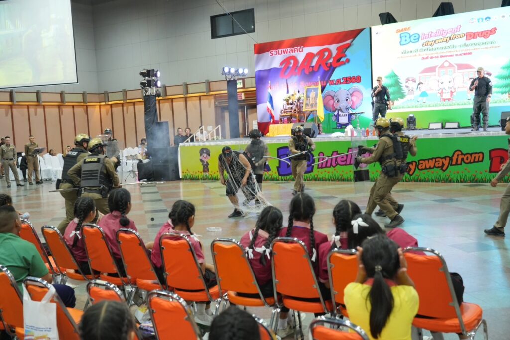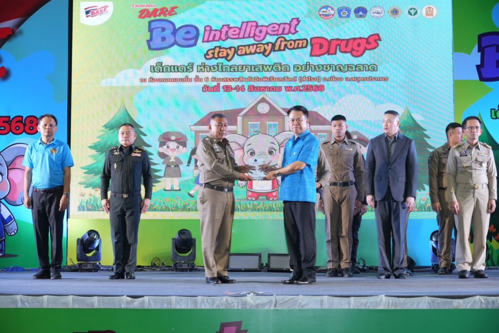 สถานีตำรวจภูธรจังหวัดสมุทรปราการ ร่วมกับองค์การบริหารส่วนจังหวัดสมุทรปราการ จัดโครงการ D.A.R.E. ประจำปี 2568 (Drug Abuse Resistance Education) ณ ห้างอิมพีเรียล เวิล์ด สำโรง จ.สมุทรปราการ เพื่อให้ความรู้และสร้างภูมิคุ้มกันทางความคิดแก่เด็กนักเรียนในการปฏิเสธสิ่งเสพติด