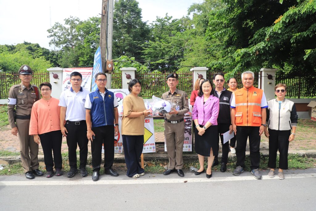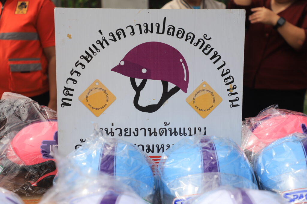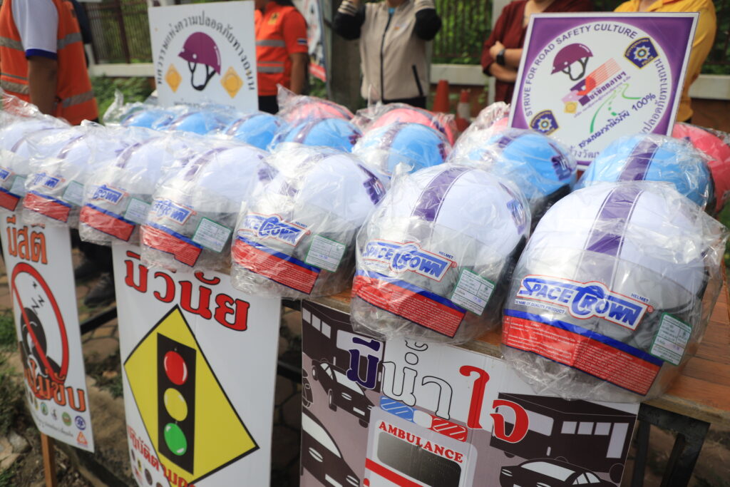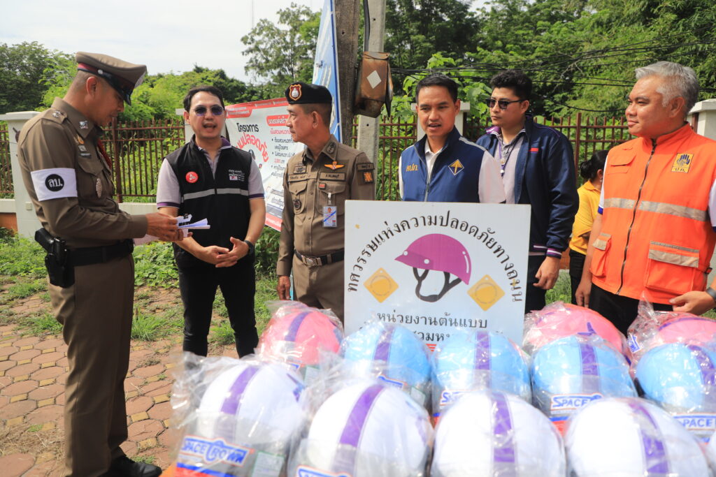 ซึ่งการสวมหมวกกันน็อคทุกครั้งที่ขับขี่หรือซ้อนท้ายรถจักรยานยนต์ คือการปกป้องชีวิตของตนเองและคนที่รัก โดยบริษัทกลางคุ้มครองผู้ประสบภัยจากรถ ได้สนับสนุนหมวกนิรภัยแบบครึ่งใบ จำนวน 15,000 ใบทั่วประเทศ โดยทางตำรวจภูธรจังหวัดลพบุรีได้รับการสนับสนุนเพื่อแจกจ่ายโดยมีเงื่อนไข แจกฟรี จำนวน 80 ใบ และแจกแบบราคาพิเศษ ใบละ 99 บาท จำนวน 120 ใบโดยแจกให้กับกลุ่มเป้าหมายเป็นประชาชนที่ไม่มีทุนทรัพย์เพียงพอและกลุ่มนักเรียนนักศึกษา และประชาชนทั่วไป