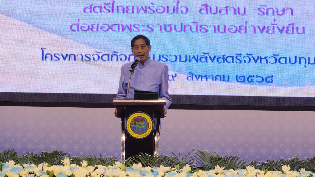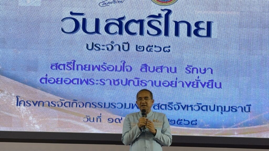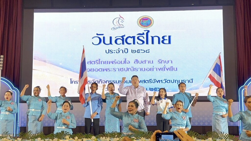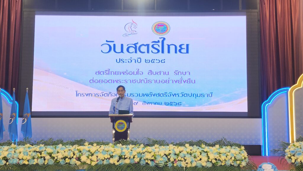 วันที่ 19 สิงหาคม 2568 ณ ห้องปทุมมาศ ศูนย์ประชุมและฝึกอบรมวิชาชีพ วิทยาลัยการอาชีวศึกษาปทุมธานี ตำบลบางพูน อำเภอเมืองปทุมธานี จังหวัดปทุมธานี นายสมคิด จันทมฤก ผู้ว่าราชการจังหวัดปทุมธานี พร้อมด้วย พล.ต.ท.คำรณวิทย์ ธูปกระจ่าง นายก อบจ.ปทุมธานี เป็นประธานในพิธีเปิดโครงการจัดกิจกรรมรวมพลังสตรีจังหวัดปทุมธานี เนื่องในวันสตรีไทย และพิธีถวายเครื่องราชสักการะ พิธีลงนามถวายพระพร และกิจกรรมเทิดพระเกียรติสมเด็จพระนางเจ้าสิริกิติ์ พระบรมราชินีนาถ พระบรมราชชนนีพันปีหลวง โดยมี นายยุทธศักดิ์ ชูประเสริฐ นายกเทศมนตรีเมืองคลองหลวง ร้อยตำรวจเอก ดร.ตรีลุพธ์ ธูปกระจ่าง นายกเทศมนตรีนครรังสิต ส.อบจ.ปทุมธานี ผู้บริหาร อบจ .บุคลากร จากหน่วยงานต่าง ๆ และกลุ่มสตรี ในจังหวัดปทุมธานี พร้อมด้วย นักเรียนที่ได้รับคัดเลือกจากโรงเรียนต่าง ๆ ภายในจังหวัดปทุมธานีเข้ารับทุนการศึกษาในกิจกรรมครั้งนี้