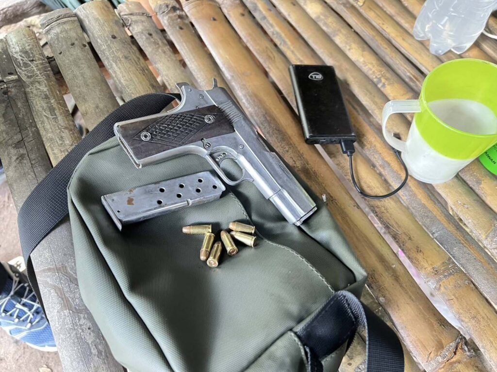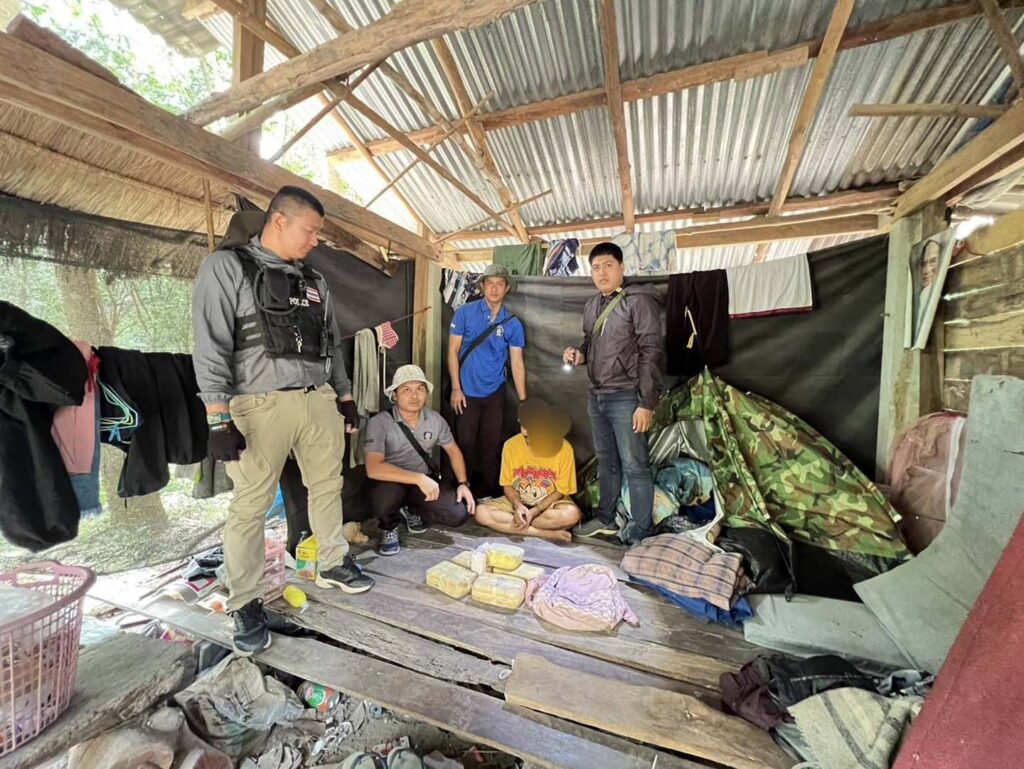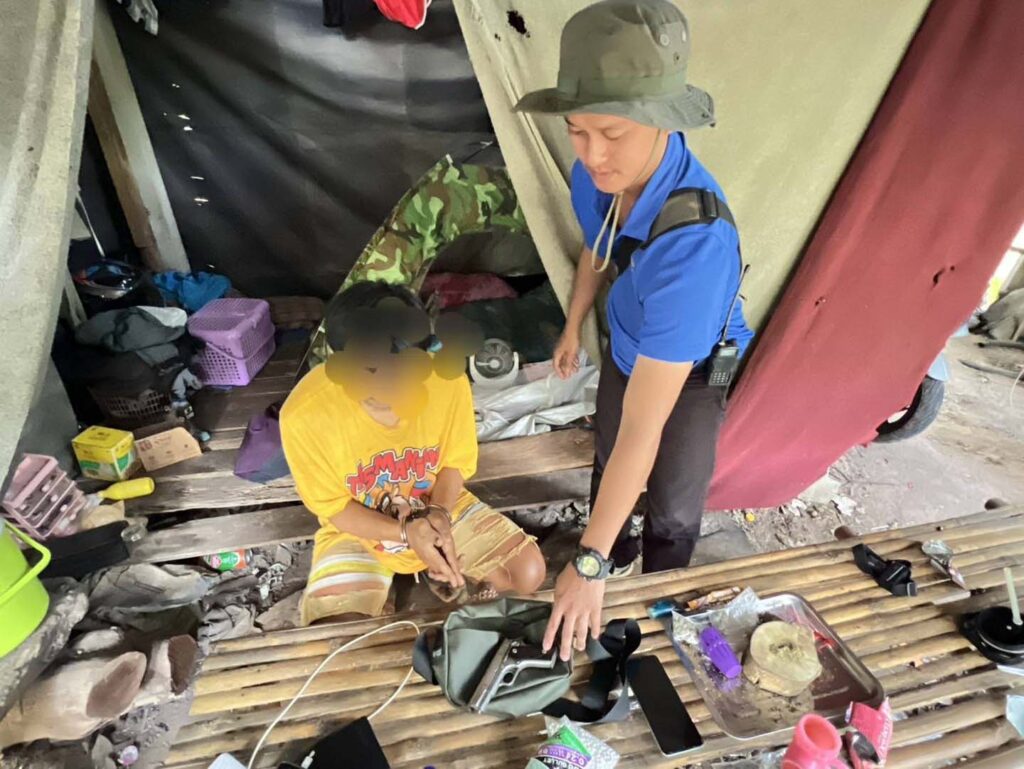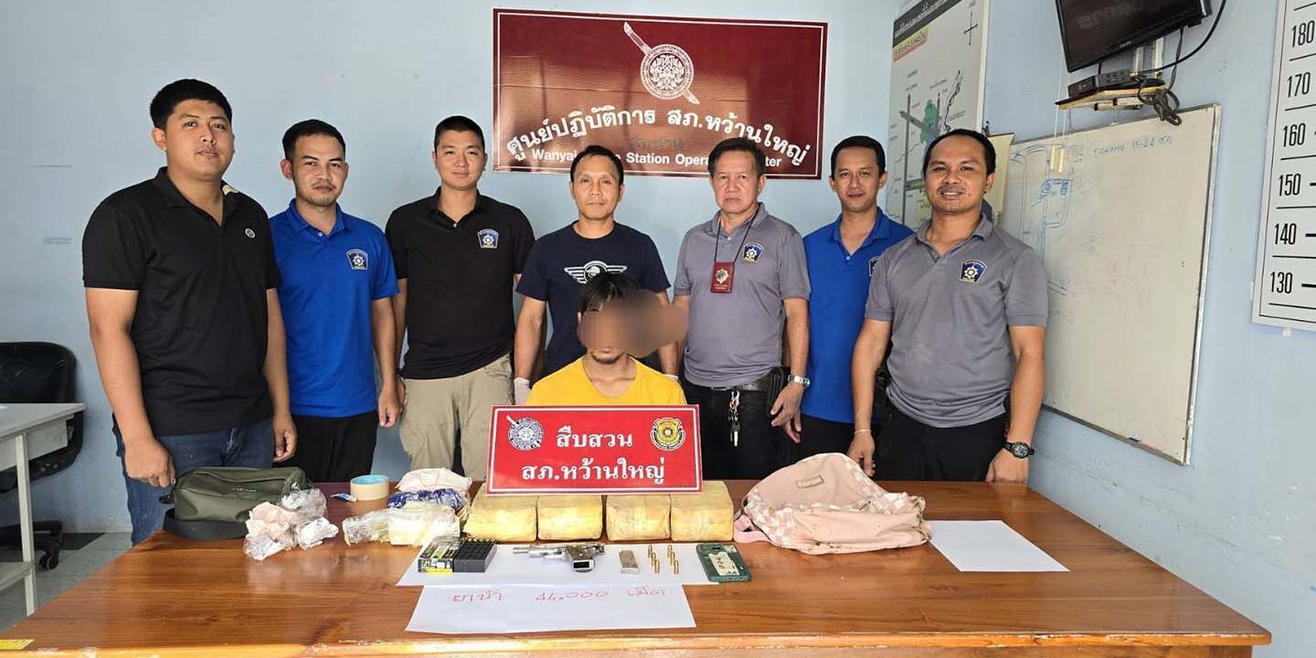 กระทั่งเจ้าหน้าที่ได้ตรวจค้นกระท่อมในสวนยางดังกล่าว พบนายณรงค์ศักดิ์ (นามสมมุติ) อายุ 25 ปี ชาว ต.โพนทราย อ.เมือง จ.มุกดาหาร อาศัยอยู่ในกระท่อมในสวนยางพารา บ้านดงหมู หมู่ที่ 4 ต.ดงหมู อ.หว้านใหญ่ จ.มุกดาหาร ผลการตรวจค้นพบของกลางยาบ้า 46,000 เม็ด อาวุธปืนสั้นแมกกาซีน แบบประดิษฐ์เอง ขานาด .32 จำนวน 1 กระบอก เครื่องกระสุนปืน .32 จำนวน 12 นัด รถจักรยานยนต์ 1 คัน โทรศัพท์มือถือ จำนวน 1 เครื่อง