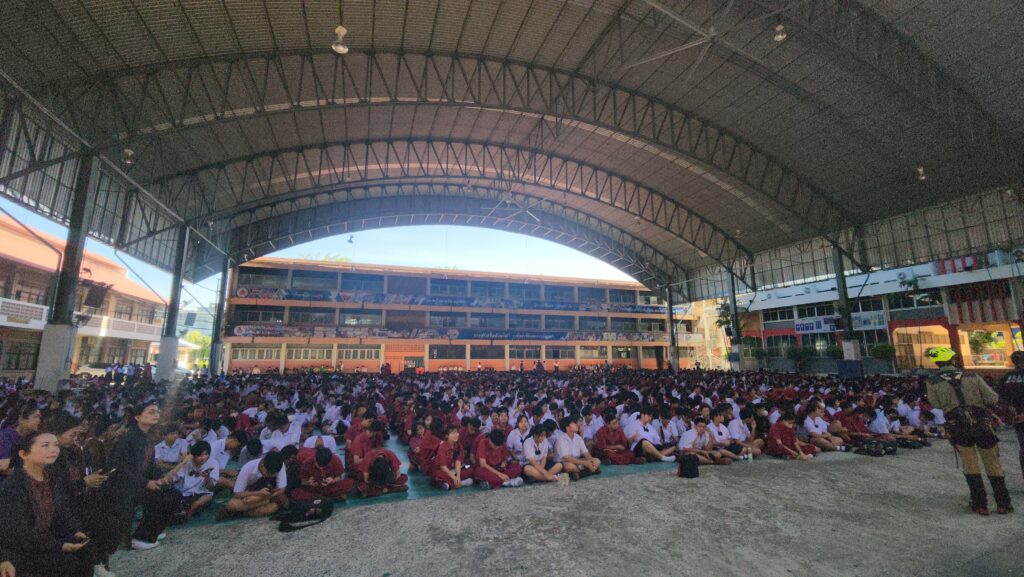 เมื่อเวลา 09.00 น. วันที่ 20 สิงหาคม 2568 ที่ โดมอเนกประสงค์ โรงเรียนธัญบุรี ต.ประชาธิปัตย์ อ.ธัญบุรี จ.ปทุมธานีโรงเรียนธัญบุรี จัดกิจกรรมอบรมเชิงปฏิบัติการ โครงการฝึกซ้อมตามแผนเผชิญเหตุ เพื่อป้องกันภัยพิบัติ ภายในสถานศึกษาโรงเรียนธัญบุรี โดยมี นายอธิปย์ อู่แก้ว ผู้อำนวยการโรงเรียนธัญบุรี ประธานในพิธี พร้อมด้วยคณะผู้บริหาร บุคลากรทางการศึกษา คณะครู และ นักเรียนเข้าร่วมอบรมกว่า 3,000 คน