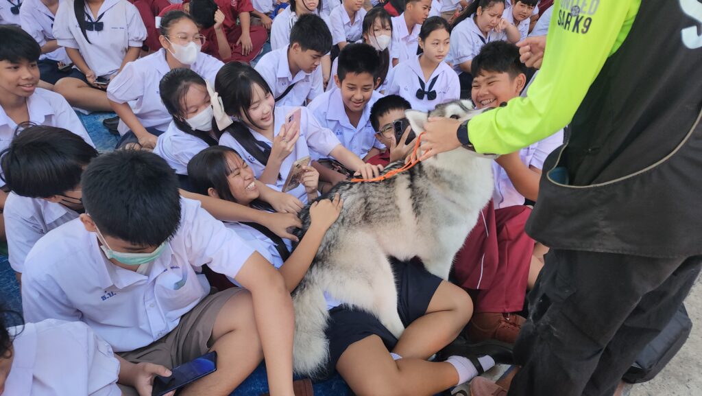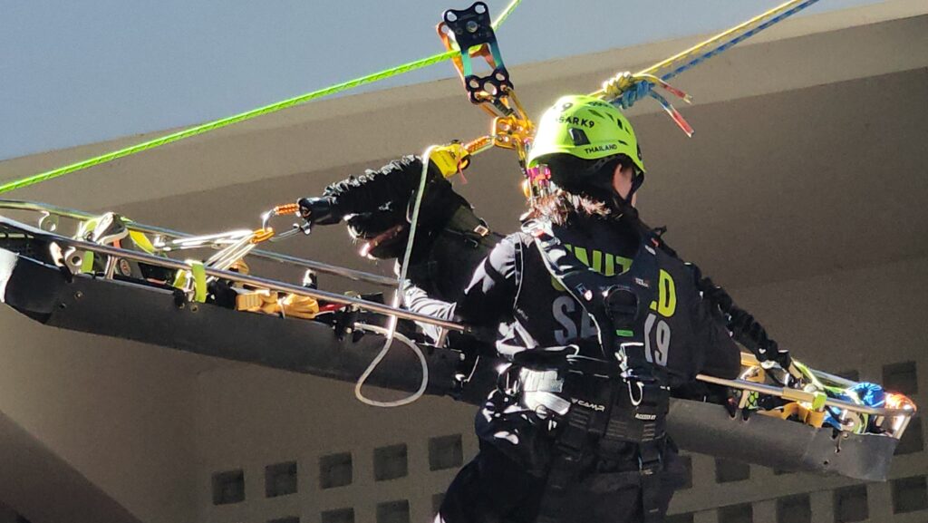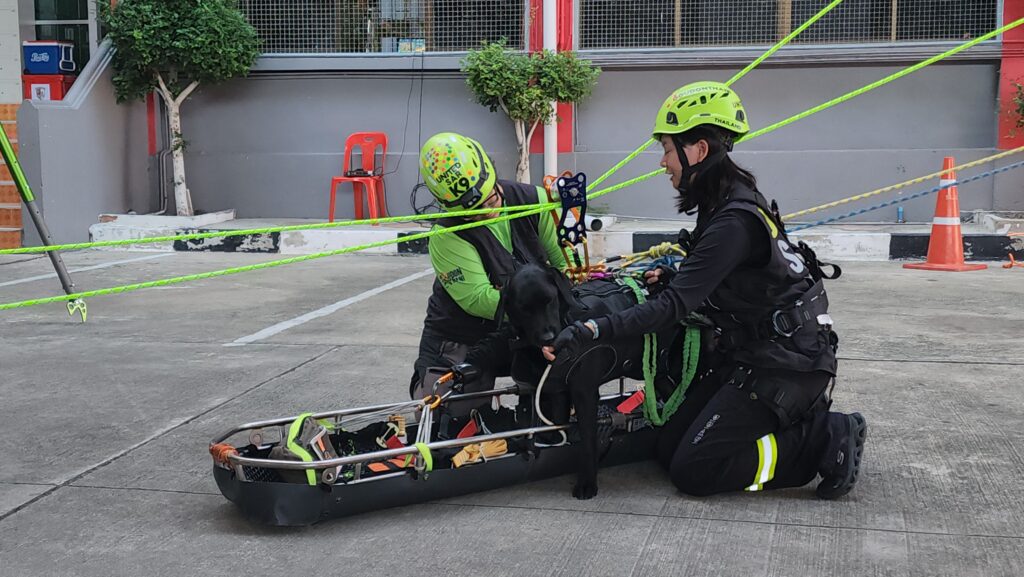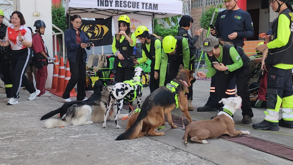 โดยไฮไลท์ที่สร้างเสียงฮือฮาให้กับผู้เข้ารับการอบรมในครั้งนี้ คือ บรรดาสุนัข K9 จาก ทีมสุนัขค้นหาและกู้ภัย United SAR K9 ที่ได้แสดงการสาธิต การค้นหาบุคคลในพื้นที่ สุ่มเสี่ยง โดยถ้า สุนัข k9 เข้าไปค้นหาผู้ประสบภัยแล้วพบเจอ จะส่งเสียงเห่า ดังอย่างต่อเนื่องเพื่อเป็นสันญาน แจ้งให้กับมนุษย์คู่หูได้รับรู้ ส่วนอีก 1 ภารกิจที่ ทีมสุนัขค้นหาและกู้ภัย United SAR K9 ได้แสดงให้เห็นคือการ เข้าปฎิบัติการบนพื้นที่สูง หรือ พื้นที่ ที่มีความต่ำมากๆ จำเป็นต้องโรยตัวลงมา สุนัข k9 ก็ได้แสดงทักษะการฝึกฝนให้เห็น ไม่ว่าจะโรยตัวลงมาพร้อมกับคู่หูมนุษย์ หรือ การ ขึ้นลงด้วย บอร์ดกู้ชีพ พร้อมคู่หูมนุษย์ นอกจากนี้ ทางทีมวิทยากรยังเปิดโอกาสให้ นักเรียนที่มีความกล้า ทดลองโรยตัวลงมาจากที่สูงด้วยอุปกรณ์กู้ภัย อีกด้วย