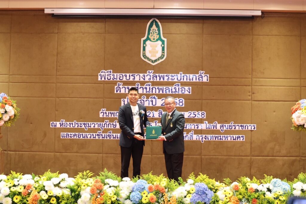 ให้แก่ พลเมืองต้นแบบ เพื่อยกย่อง เชิดชูเกียรติ บุคคล ที่มีคุณลักษณะส่งเสริมและสร้างสำนึกพลเมือง ที่มีธรรมาภิบาล ทำประโยชน์เพื่อชุมชน สังคม ประเทศชาติ ด้วยสำนึกพลเมืองจนเป็นที่ประจักษ์