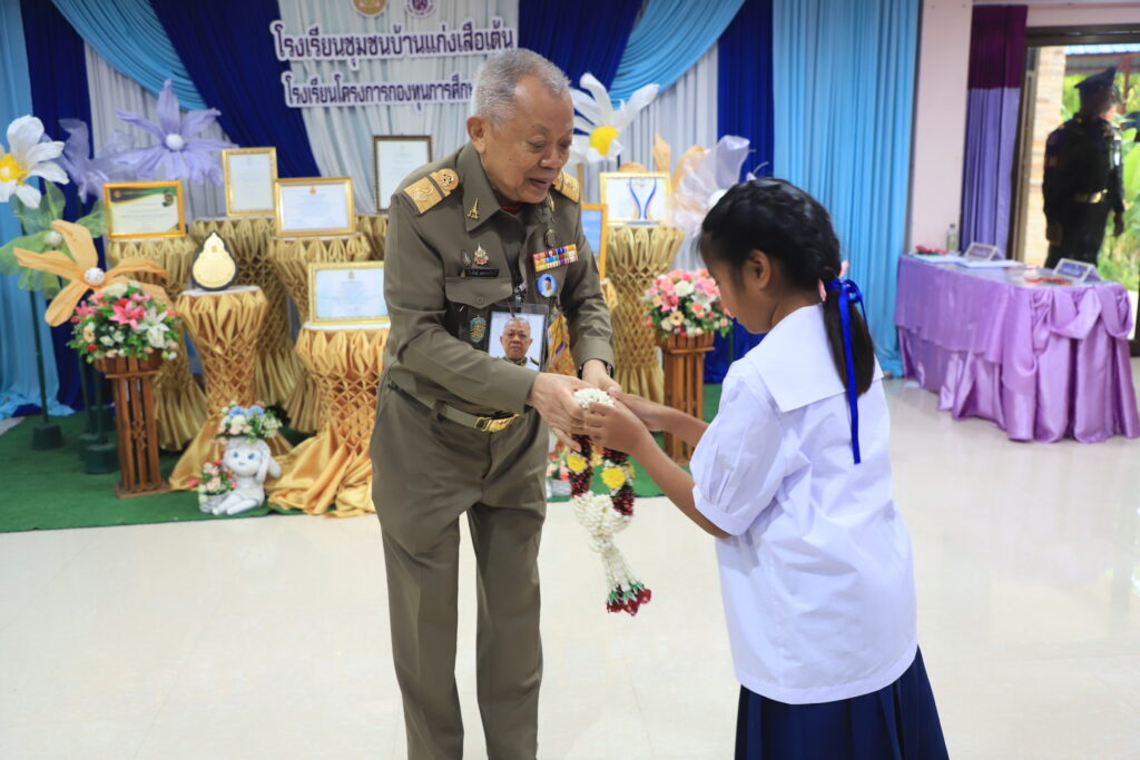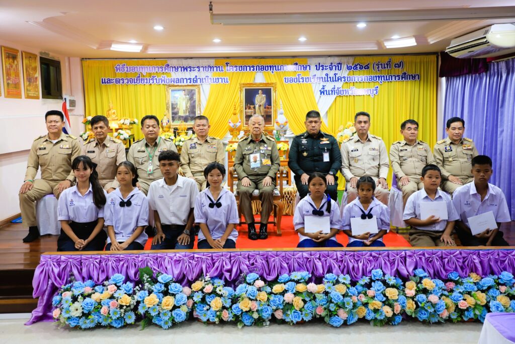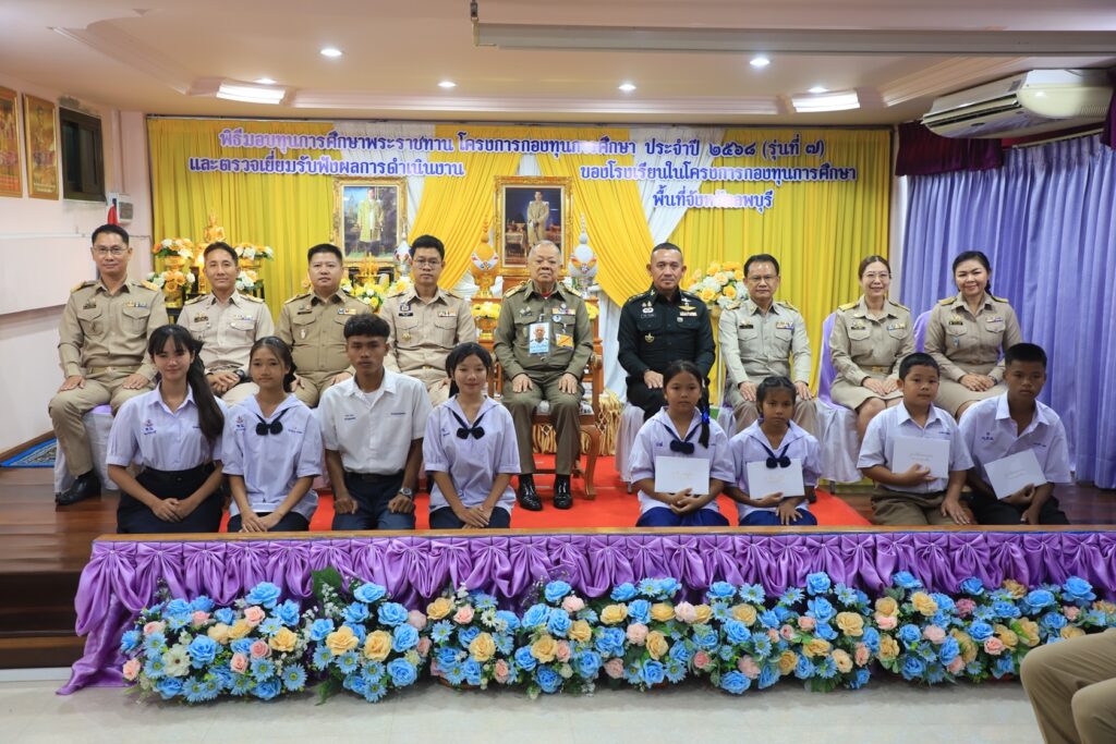 วันที่ 21 สิงหาคม 2568 เวลา 09.20 น. ที่ โรงเรียนชุมชนบ้านแก่งเสือเต้น อำเภอพัฒนานิคม จังหวัดลพบุรี พลเอกบัณฑิตย์ มลายอริศูนย์ องคมนตรี เป็นประธานในพิธีมอบทุนการศึกษาพระราชทาน โครงการกองทุนการศึกษา ประจำปี 2568 รุ่นที่ 7 พร้อมตรวจเยี่ยมรับฟังผลการดำเนินงานของโรงเรียนในโครงการกองทุนการศึกษาโรงเรียนเครือข่ายคุณธรรม จริยธรรม พื้นที่จังหวัดลพบุรี เพื่อเป็นการสร้างขวัญและกำลังใจในการปฏิบัติงานของคณะครู บุคลากร และนักเรียน รับทราบปัญหา ข้อขัดข้อง ผลการดำเนินงาน พร้อมประสานหน่วยงานที่เกี่ยวข้อง ดำเนินการแก้ไข โดยมี ว่าที่ร้อยตรีทรงพล แป้นแก้ว รองผู้ว่าราชการจังหวัดลพบุรี พร้อมด้วย พล.ต.นิธิ อิงคสุวรรณ ผู้บัญชาการมณฑลทหารบกที่ 13 นายวัชรพงศ์ พิพัฒน์สุริยวงศ์ ศึกษาธิการจังหวัดลพบุรี นายอำเภอพัฒนานิคม นายอำเภอโคกเจริญ ผู้แทนตำรวจภูธรจังหวัดลพบุรี หัวหน้าส่วนราชการ ผู้อำนวยการเขตพื้นที่การศึกษา ผู้บริหารสถานศึกษา คณะครู กำนัน และ ผู้ใหญ่บ้าน เข้าร่วม