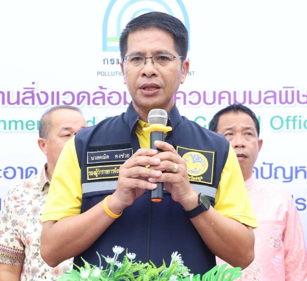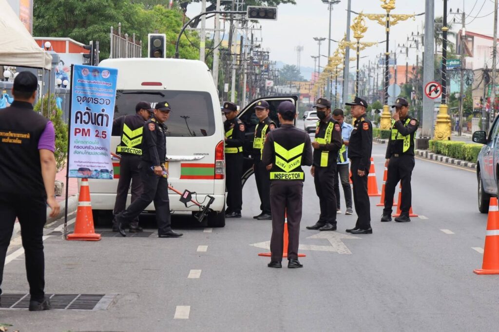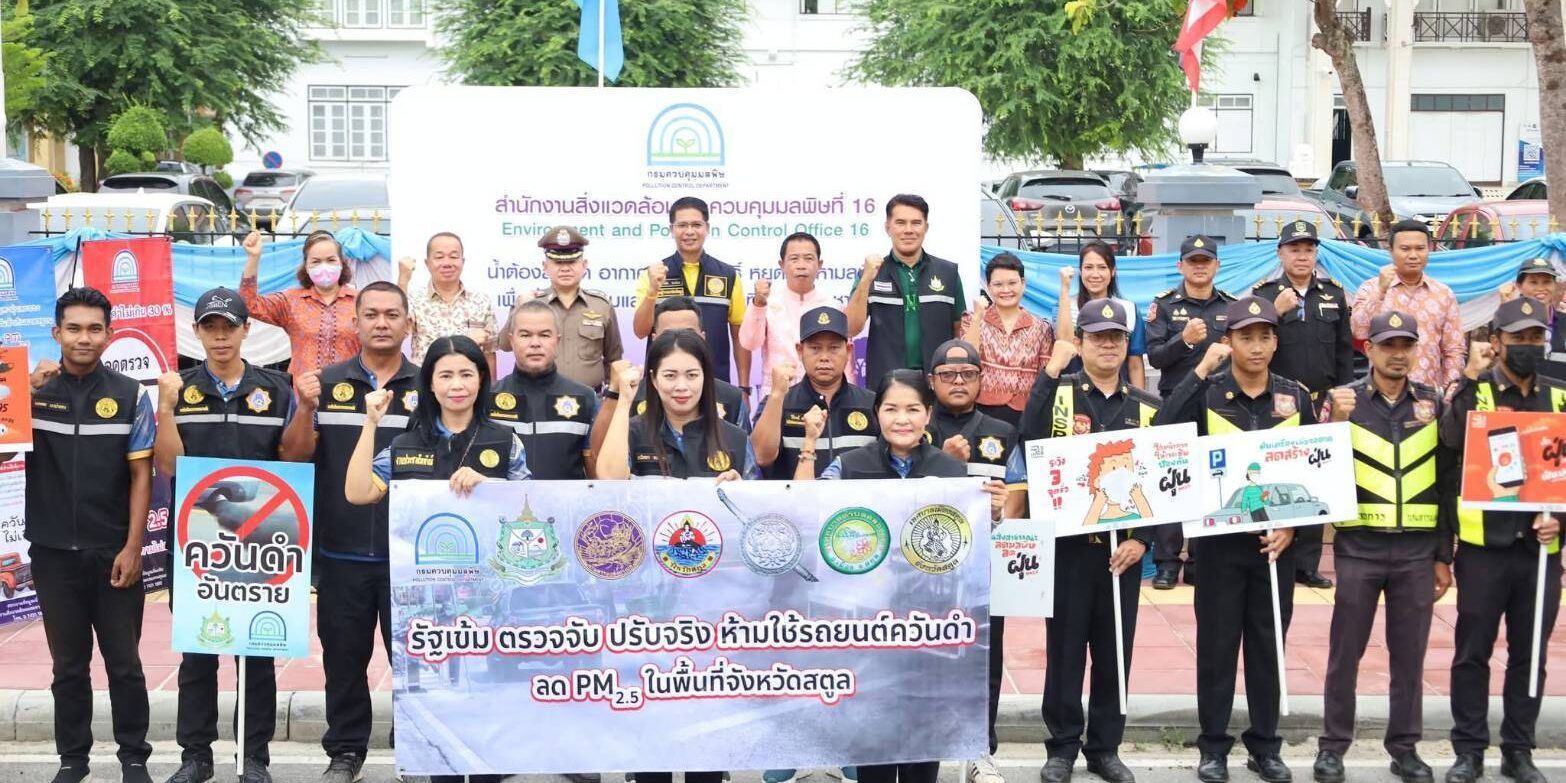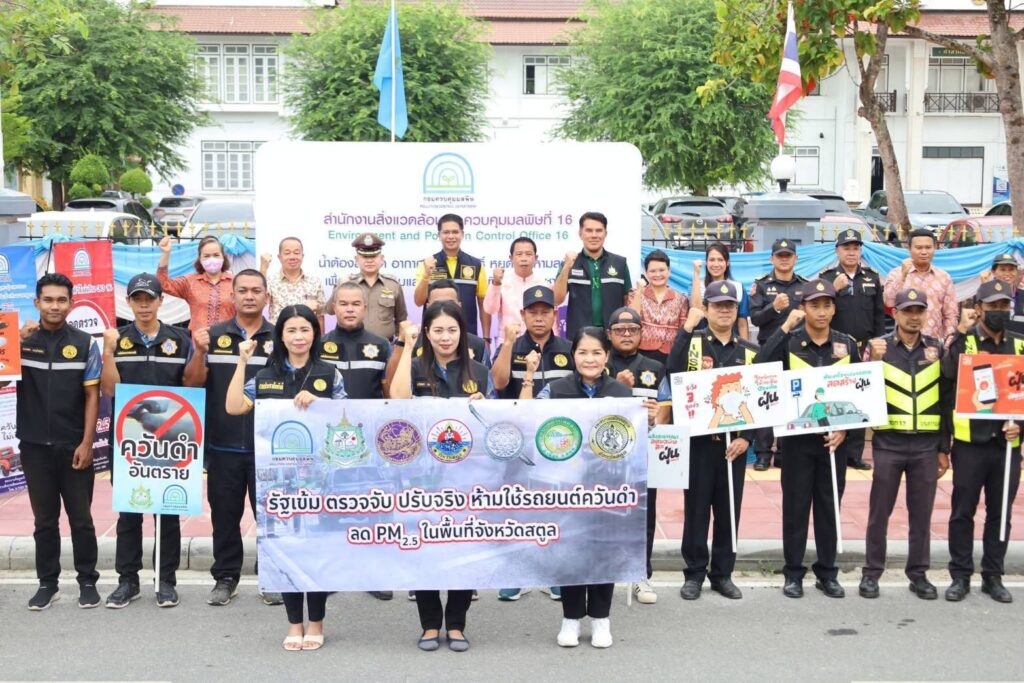 วันนี้ 21 ส.ค. 68 ณ จุดตรวจบริเวณหน้าศาลากลางจังหวัดสตูล ถนนสตูลธานี ตำบลพิมาน อำเภอเมือง จังหวัดสตูล นายศักระ กปิลกาญจน์ ผู้ว่าราชการจังหวัดสตูล มอบหมายให้ นายคณิต คงช่วย ผู้ว่าราชการจังหวัดสตูล เป็นประธานเปิดกิจกรรม “รัฐเข้ม ตรวจจับ ปรับจริง ห้ามใช้รถยนต์ควันดำ ลด PM2.5 ในพื้นที่จังหวัดสตูล” โดยมีหัวหน้าส่วนราชการและหน่วยงานที่เกี่ยวข้องเข้าร่วม ภายในงานประธานได้เยี่ยมชมจุดตรวจ ร่วมสังเกตการณ์ตรวจวัดควันดำ และติดสติกเกอร์ “ห้ามใช้ชั่วคราว” ให้กับรถยนต์ที่ค่าควันดำเกินมาตรฐาน เพื่อแสดงถึงความจริงจังของจังหวัดในการลดปัญหามลพิษทางอากาศ