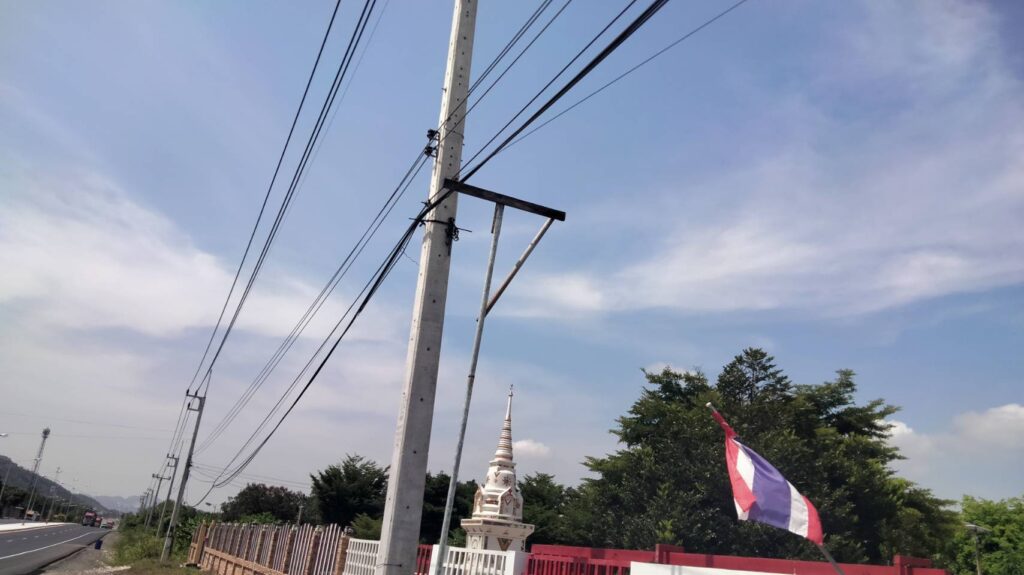 ต้องเอาเสาไม้ไปคํ้าไว้ จึงอยากให้ผู้เกี่ยวข้องมาทำการยกขึ้นไว้ที่เสาไฟฟ้าด้วย