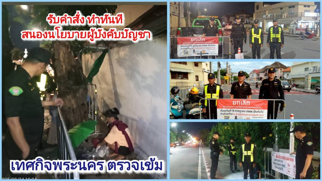 วันนี้ ( 24ส.ค.68) เวลา 16.02 น. – 21:20 น. นายโกศล สิงหนาท ผู้อำนวยการเขตพระนคร มอบหมาย นายณัฐชนนท์ ชญาน์ธนวิชญ์ หัวหน้าฝ่ายเทศกิจ นายเอกราช ปลอดโปร่ง เจ้าพนักงานงานเทศกิจชำนาญการ สั่งการให้ นายประภาส ดีมูล หัวหน้างานเทศกิจชุดกลางคืน 2511 จัดกำลัง เจ้าหน้าที่สายตรวจเทศกิจ ชุด 2510 ชุด 2511 ว.4 ตรวจสอบความเรียบร้อยกวดขันผู้ค้าคนเร่ร่อนและกวดขันห้ามมีการแจกข้าว พื้นที่ เขตพระนคร กทม.