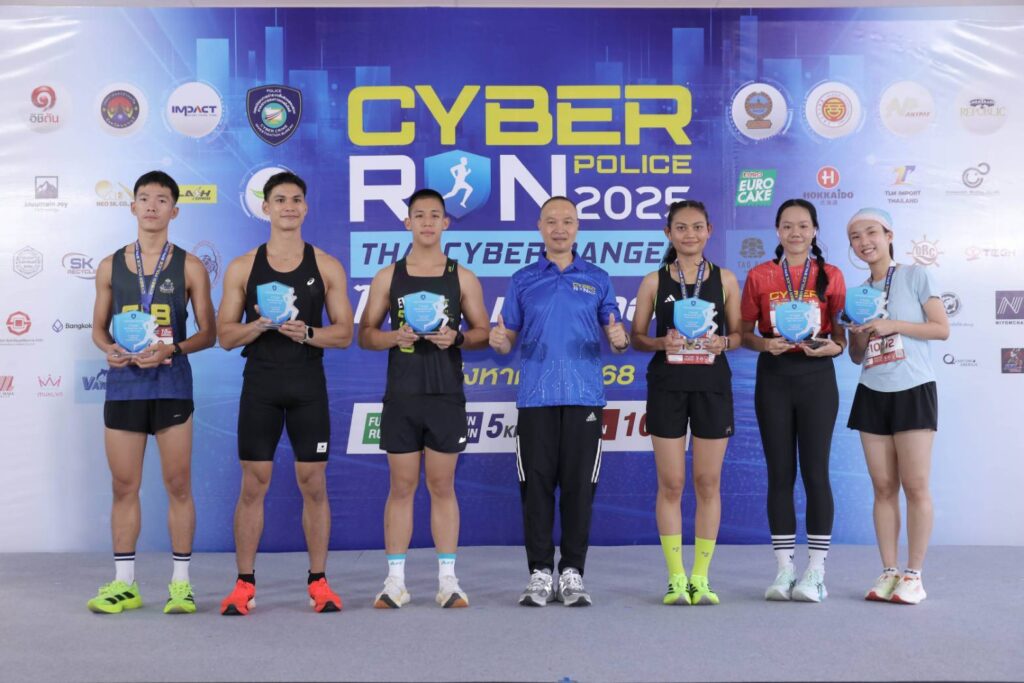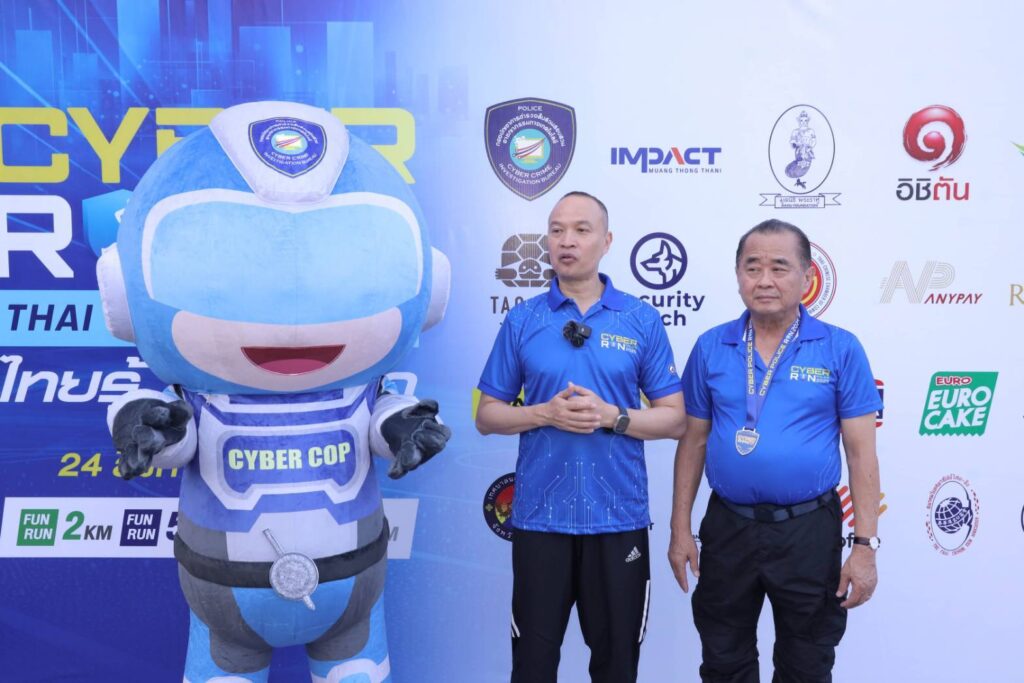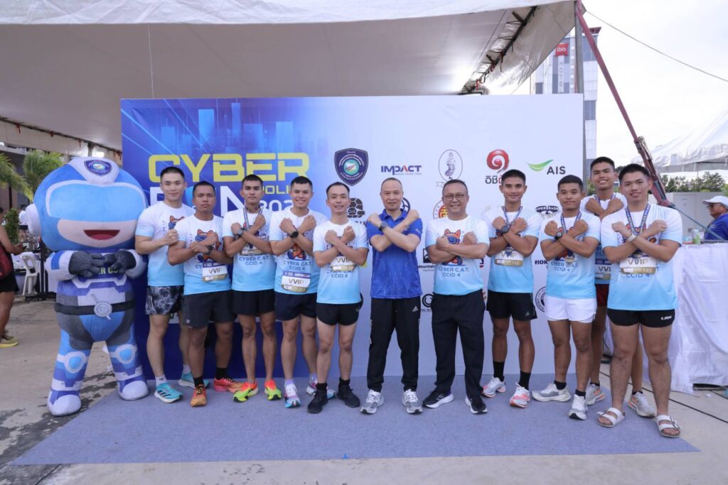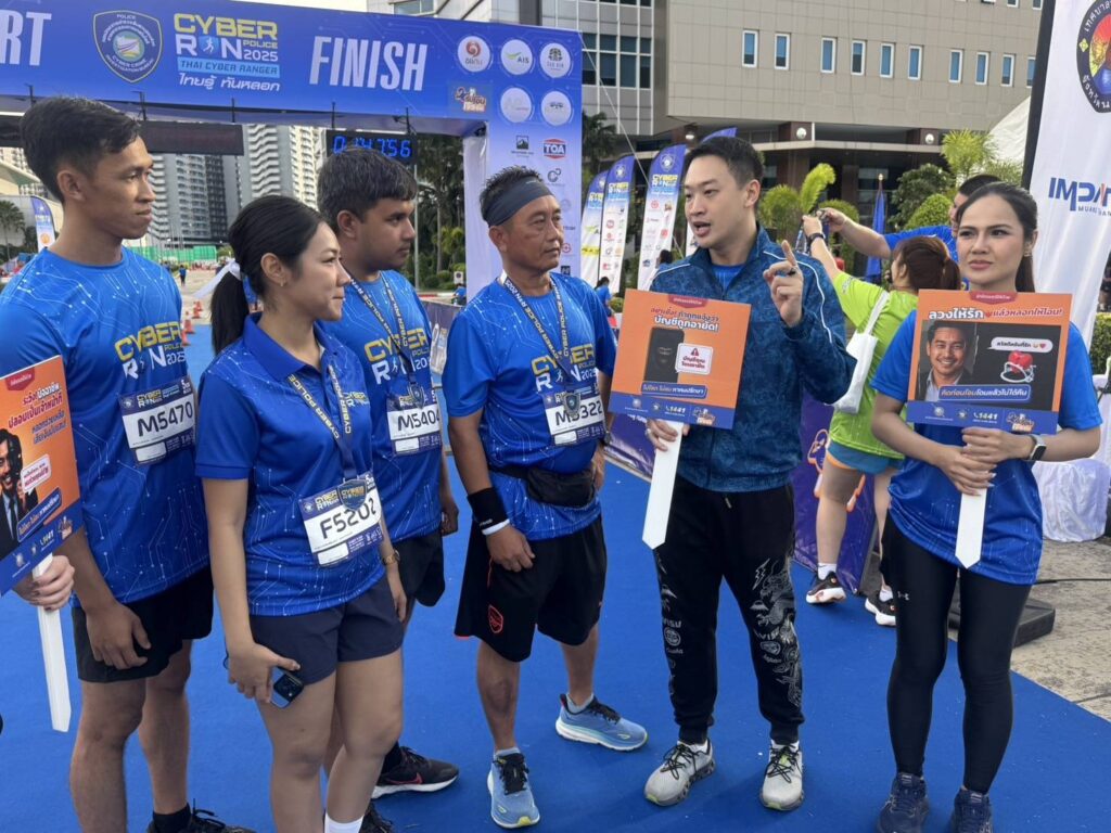 เมื่อเวลา 05.00 น. วันที่ 24 ส.ค . ที่อาคารเฉลิมพระเกียรติฯ เมืองทองธานี กองบัญชาการสืบสวนสอบสวนอาชญากรรมทางเทคโนโลยี ได้จัดกิจกรรม“CYBER POLICE RUN 2025” เสริมสร้างสุขภาพกายใจ ยกระดับความตระหนักรู้ภัยออนไลน์ ภายใต้โครงการ THAI CYBER RANGER “ไทยรู้ ทันหลอก” โดยมี พล.ต.ท.ไตรรงค์ ผิวพรรณ ผบช.สอท. เป็นประธาน ในการปล่อยตัวนักวิ่งร่วมเข้าแข่งขัน แบ่งระยะการวิ่งทั้งหมดเป็น 3 ระยะ ประกอบด้วย วิ่ง 10 กม., วิ่ง 5 กม. และวิ่ง 2 กม. ทั้งนี้มีประชาชนจำนวนมากเข้าร่วมการแข่งขันมากกว่า 2 พันคน นอกจากนี้ยังมี นายดำรงค์ เก่งรุ่งเรืองชัย ประธานคณะจัดงาน CYBER POLICE RUN 2025 พล.ต.ต.วิวัฒน์ คำชำนาญ พล.ต.ต.ทินกร รังมาตย์ พล.ต.ต.อรุษ แสงจันทร์ รอง ผบช.สอท. นายตัน ภาสกรนที ประธานกรรมการบริหารบริษัท อิชิตัน จำกัด (มหาชน), นายพันธนันท์ อมตานนท์ ประธานเจ้าหน้าที่ฝ่ายพัฒนาธุรกิจ Chief Business Development Officer บริษัท ฟอร์ท คอร์ปอเรชั่น จำกัด (มหาชน), นายอนุภัทร พิสิฐโภคิน ประธานเจ้าหน้าที่บริหารสายงานการตลาด Chief Business Marketing Officer, นายจักรี จันทร์มาลา ผู้จัดการฝ่ายรัฐกิจสัมพันธ์ บริษัท แฟลช เอ็กซ์เพรส (ประเทศไทย) จำกัด, น.ส. กุลวดี จิตวร ผู้อำนวยการบริหาร อิมแพ็ค เมืองทองธานี แมเนจเม้นท์ ผู้บริหารอสังหาริมทรัพย์ ทรัสต์ และมูลนิธิพระราหู ได้มาร่วมให้กำลังใจ ปล่อยตัวนักวิ่ง และออกวิ่งไปกับเหล่านักวิ่งนับพันชีวิต