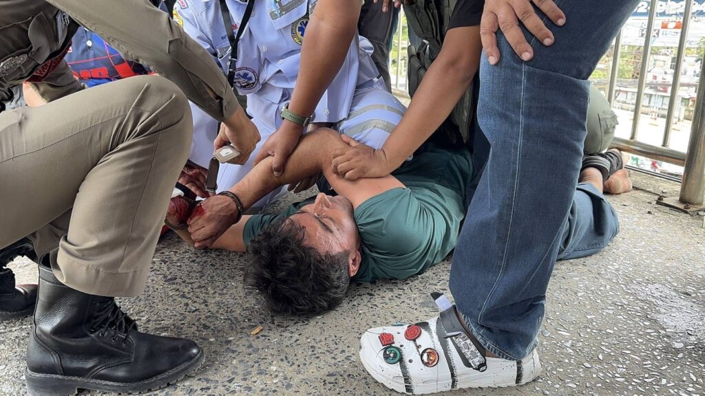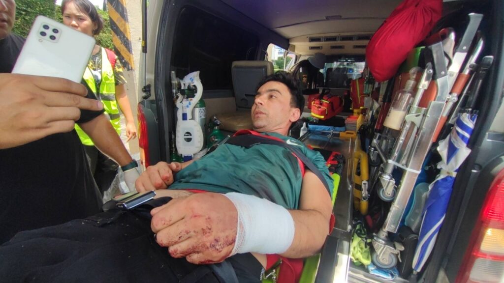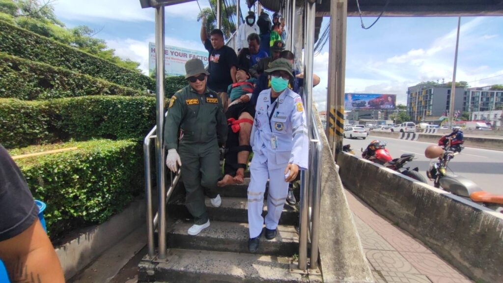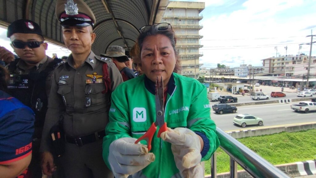 เมื่อเวลา10.30 น.วันที่ 25 ส.ค.68 ร.ต.อ.กิตติศักดิ์ ไกรษร ร้อยเวรสองศูนย์สภ.คลองหลวงได้รับแจ้งเหตุมีชายต่างชาติใช้กรรไกรทำร้ายตนเองและพยายามจะกระโดดสะพานลอยคนข้ามหน้าบริษัทเซนทาโก ถนนพหลโยธิน ต.คลองหนึ่ง อ.คลองหลวง จ.ปทุมธานี จึงไปที่เกิดเหตุพร้อมด้วยเจ้าหน้าที่ตำรวจสายตรวจ เจ้าหน้าที่ตำรวจสืบสวนสภ.คลองหลวง เจ้าหน้าที่มูลนิธิร่วมกตัญญูและเจ้าหน้าที่อาสาร่วมด้วยช่วยกัน