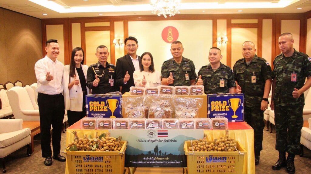 เมื่อวันที่ 25 ส.ค. 68 เวลา 11.30 น. คุณรุ้ง ธนิภา พุ่มเรือง พร้อมด้วย คุณณัฐดนัย เจริญลาภนพรัตน์ คุณอัญญากาณต์ อิงเกียรติกุลณ์ ตัวแทนจากบริษัท จ.เจริญทรัพย์พาณิชย์ จำกัด และคุณกอบธนาเดช โตรักษา เดินทางมอบกล้วยตาก และลำไย ให้กับกำลังพลที่สนับสนุนภารกิจป้องกัน ประเทศของ ทบ. ที่ปฏิบัติหน้าที่บริเวณชายแดน ไทย – กัมพูชาที่ โดยมี พล.ท. บุญสิน พาดกลาง มทภ.2 พร้อมด้วยผู้บังคับบัญชาระดับสูงของ ทบ. เป็นผู้แทนรับมอบเพื่อนำไปที่ชายแดนเลยทันที อาทิเช่น พลโทจินตมัย ชีกว้าง พลตรีนฤดล สุขมา พันเอกอภินันท์ ทิพย์เทพ รับมอบ โดยประกอบด้วย กล้วยตาก จำนวน 100 กิโลกรัม, ลำไย จำนวน 100 กิโลกรัม และเชอรี่สด จำนวน 5 กล่อง รวมมูลค่า 46,000.- บาท ณ ห้องรับรอง 212 บก.ทบ.