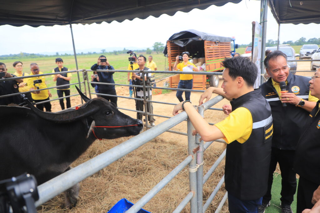 วันที่ 25 สิงหาคม 2568 ที่ศูนย์วิจัยและพัฒนาโคเนื้อ อ.ลำสนธิ จ.ลพบุรี นายอรรถกร ศิริลัทยากร รัฐมนตรีว่าการกระทรวงเกษตรและสหกรณ์ เป็นประธานเปิดโครงการ “ถ่ายทอดเทคโนโลยีอาหารหยาบลดต้นทุนเพื่อเกษตรกร” โดยมี นายวรวงศ์ วรปัญญา สมาชิกสภาผู้แทนราษฎร เขต 5 จังหวัดลพบุรี นายอภัย สุทธิสังข์ รองปลัดกระทรวงเกษตรและสหกรณ์ นายประยูร ศิริวรรณ รองผู้ว่าราชการจังหวัดลพบุรี นายสัตวแพทย์สมชวน รัตนมังคลานนท์ อธิบดีกรมปศุสัตว์ พร้อมด้วยผู้บริหารระดับสูงกระทรวงเกษตรและสหกรณ์ หัวหน้าส่วนราชการ ข้าราชการ เจ้าหน้าที่และพี่น้องเกษตรในพื้นที่เข้าร่วม