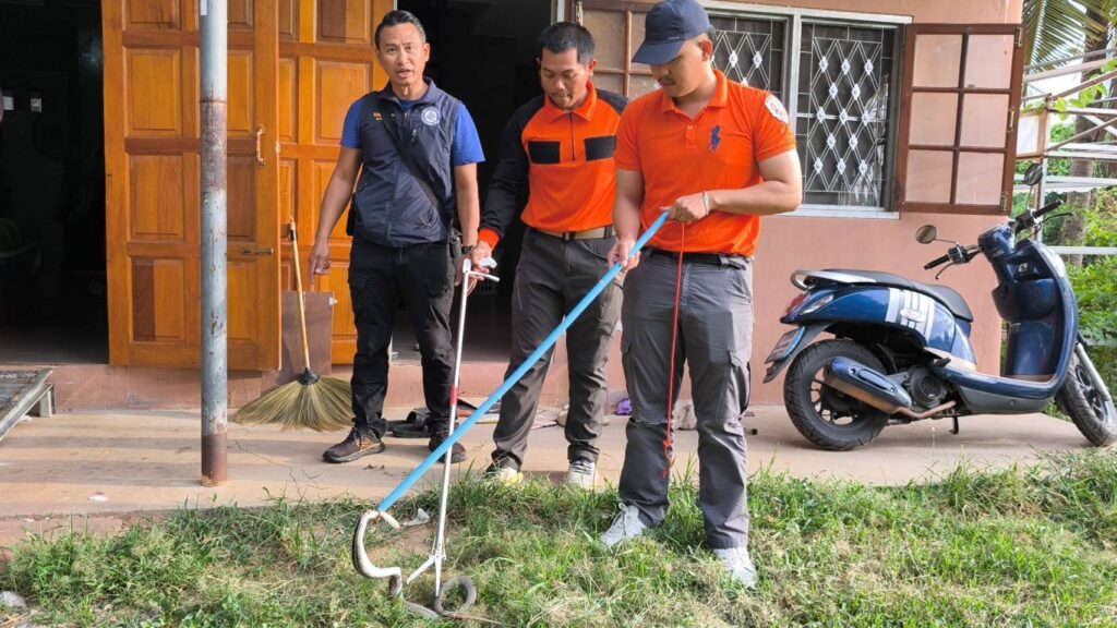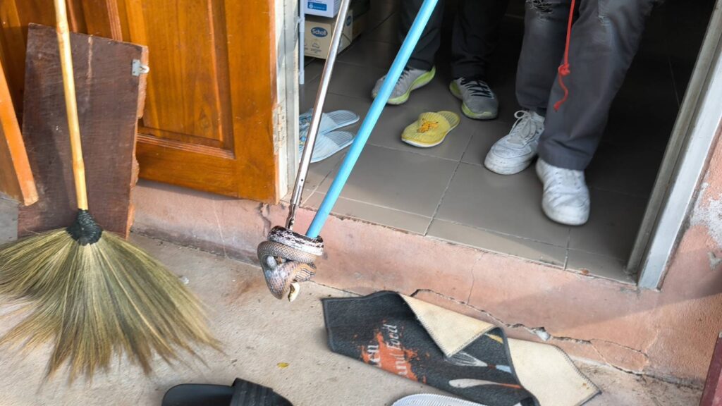 วันที่ 22 สิงหาคม 2568 ผู้สื่อข่าวได้รายงานว่า เจ้าหน้าที่งานป้องกันและบรรเทาสาธารณะภัยเทศบาลตำบลพิมาย ได้รับแจ้งขอความช่วยเหลือจากชาวบ้าน ชุมชนตะวันตกวัดเดิม หมู่ที่ 1 ตำบลในเมือง อำเภอพิมาย จังหวัดนครราชสีมา ให้มาช่วยจับงู หลังจากมีงูไม่ทราบชนิดเข้าไปซุกอยู่ในครัวหลังบ้าน