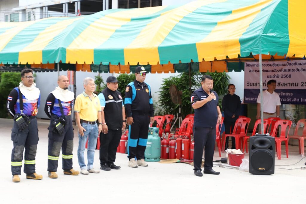 เมื่อเวลา 11.00 น. วันที่ 30 สิงหาคม 2568 พล.ต.ท.คำรณวิทย์ ธูปกระจ่าง นายก อบจ.ปทุมธานี เป็นประธานในพิธีและกล่าวเปิด โครงการฝึกอบรมซ้อมแผนป้องกันและบรรเทาสาธารณภัยแผนป้องกันและระงับภัย ประจำปี 2568 ของนิติบุคคลหมู่บ้านจัดสรร โครงการการศูนย์การค้าวิภาวดีรังสิต (แฟคโก้) ต.คูคต อ.ลำลูกกา จ.ปทุมธานี โดยมี นายธีราทัต ส่องแสง นายกเทศมนตรีเมืองลำสามแก้ว และนายเตชิต มั่นหรั่งสมาชิกสภา อบจ.เขตเลือกตั้งที่ 1 อ.ลำลูกกา ให้เกียรติร่วมพิธีเปิดโครงการฯ