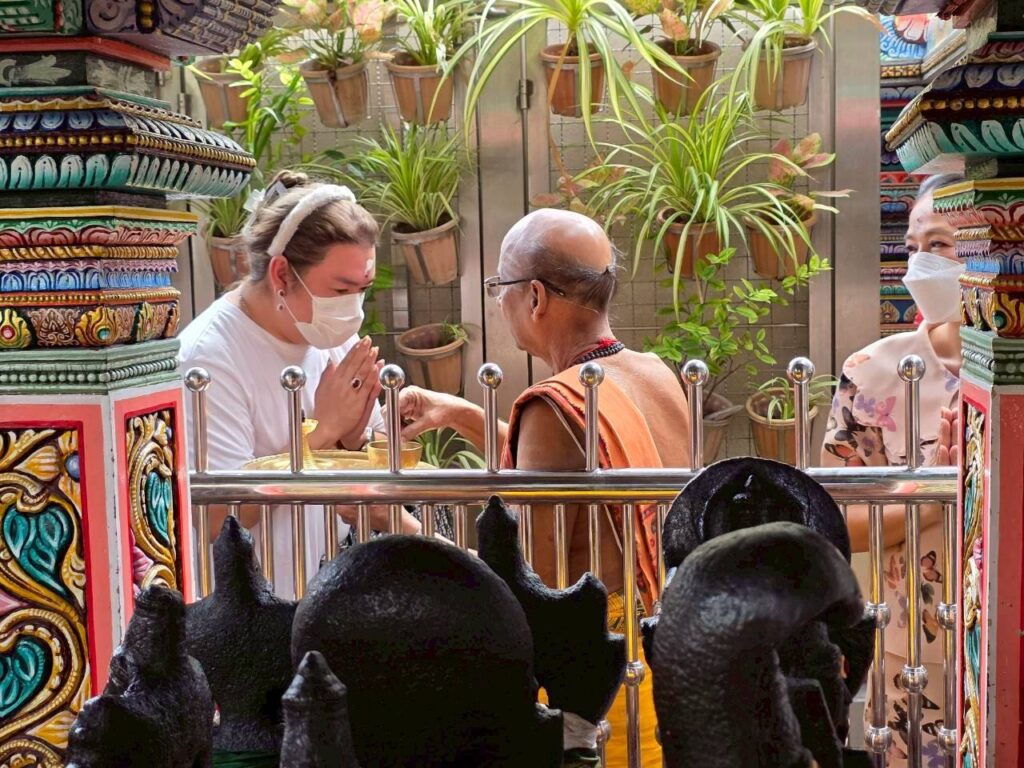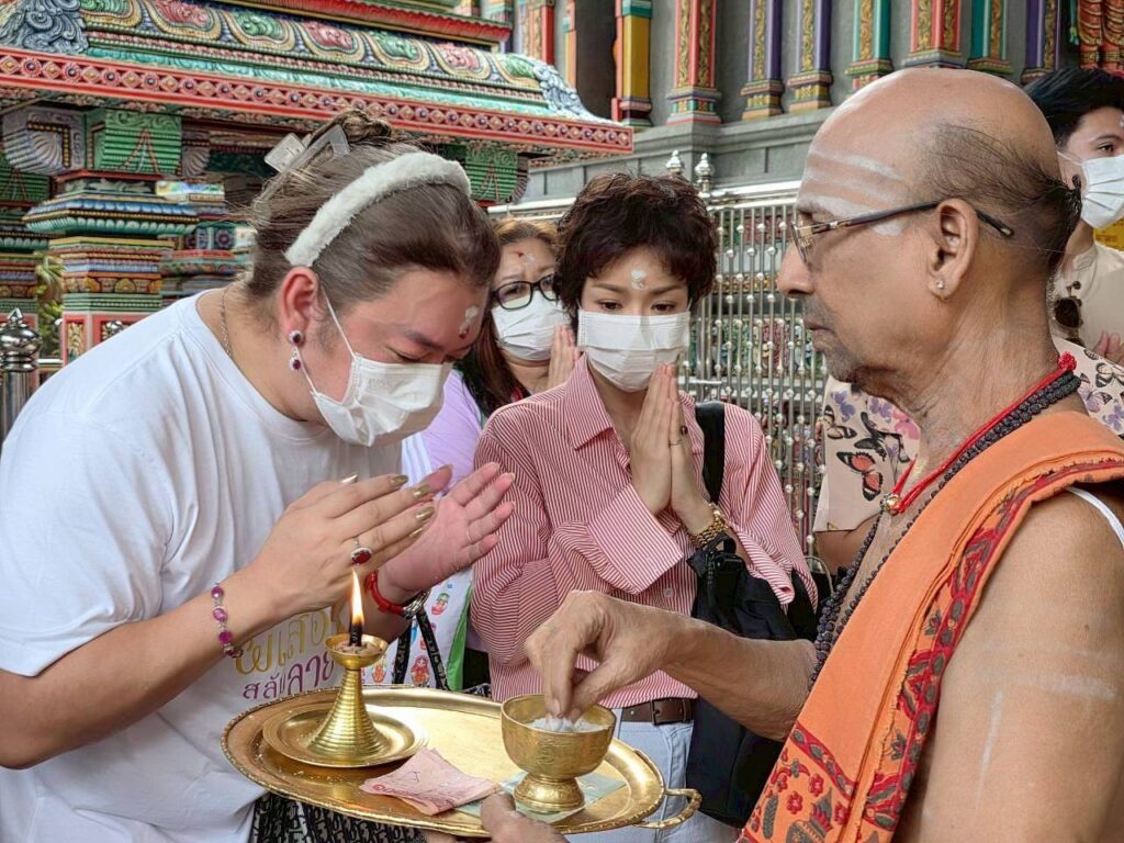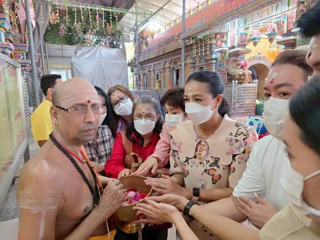 ผู้จัดฯ คนเก่ง กบ-ปภัสรา เตชะไพบูลย์ แห่งค่ายปภัสราโปรดักชั่น ก็ไม่พลาดโอกาสดี ชวนนักแสดง อาทิ นุ๊ก สุทธิดา, โก้ ธีรศักดิ์ และ ทศ-รวิศชา จากละคร “ผีเสื้อสลับลาย” ที่กำลังออกอากาศทุกวันจันทร์-ศุกร์ เวลา 19.00 น. ทางช่อง 7HD มากราบไหว้ขอพร องค์พระพิฆเนศร์ เทพเจ้าแห่งความสำเร็จ และเทพฮินดูทุกๆ พระองค์ ณ วัดพระศรีมหาอุมาเทวี (วัดแขก สีลม) เพื่อความเป็นสิริมงคลกับชีวิต และขอพรให้กับละคร “ผีเสื้อสลับลาย” ที่เดินเรื่องมาถึง 4 ตอนสุดท้ายกันแล้ว ให้มีเรตติ้งปังๆ โด่งๆ ดังๆ และเป็นที่นิยมชมชอบของแฟนละครทั่วประเทศ