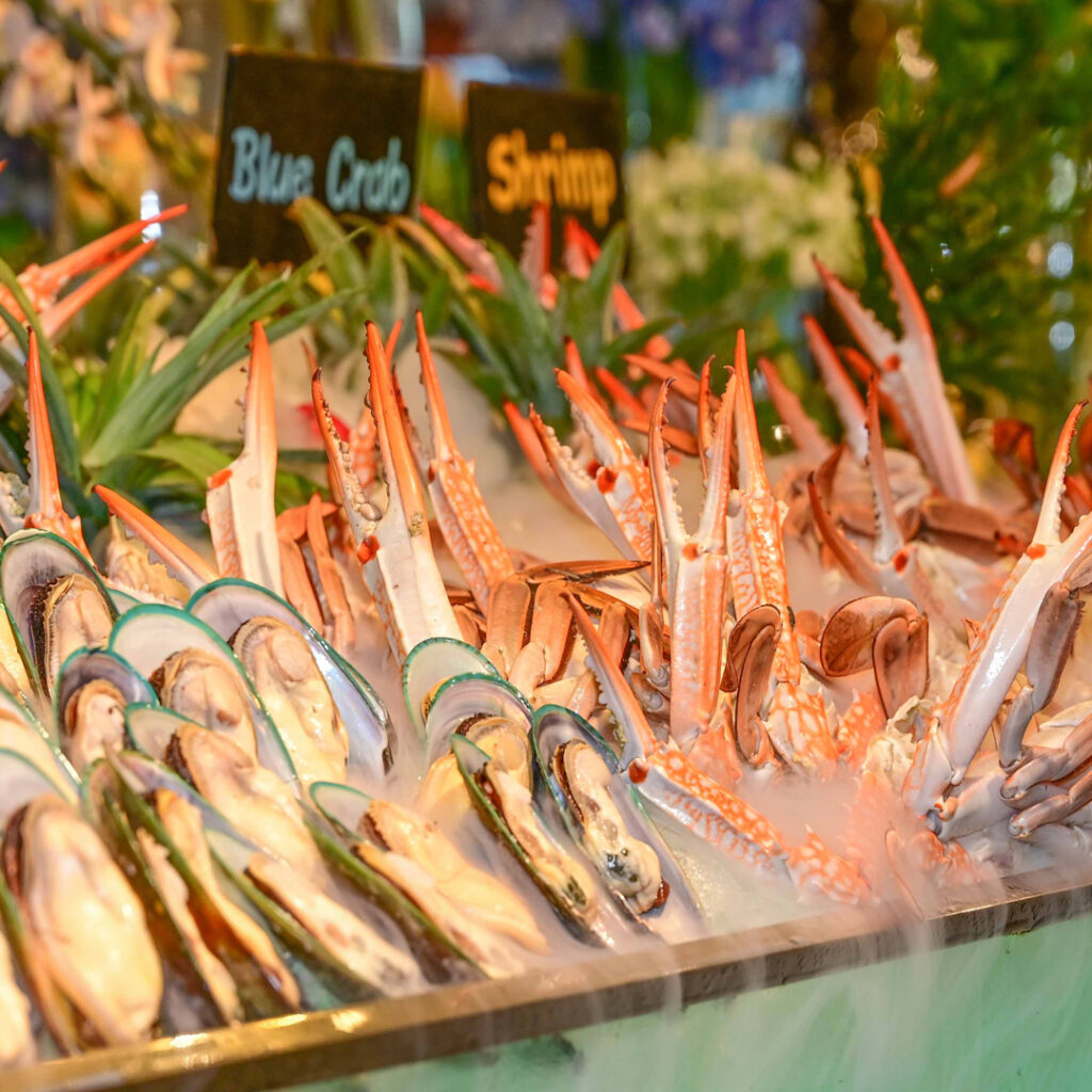 บริการรวมในบุฟเฟต์นานาชาติมื้อเย็นที่มีซีฟู้ดและซูชิพรีเมียม อาทิ หอยนางรม ปูม้า หอยหวาน กุ้งแม่น้ำ หอยแมลงภู่นิวซีแลนด์ ฯลฯ พร้อมน้ำจิ้มสูตรเด็ด รสแซบ ซูชิฟัวกราส์ วากิว แซลมอน ทานได้ไม่อั้น มุมข้าวต้มกุ๊ยที่มีเครื่องเคียงกับข้าวมากมายให้เลือกอิ่มอร่อย มุม Carving Station 7 วัน 7 เมนู นอกจากนี้ยังมีขาหมูสูตรดิเอมเมอรัลด์ ข้าวต้มปลากะพง ส้มตำและยำต่างๆ ซุปทรัฟเฟิล พาสต้า เทปปันยากิ กุ้งแม่น้ำเผา เทมปุระ รวมเครื่องดื่มน้ำอัดลม ชา-กาแฟ ของหวานทั้งไทย เบเกอรี่โดยฝีมือเชฟเต้-จักรพรรดิ์ พจน์ชัยกุล ผู้ชนะเชฟกระทะเหล็กสายหวาน ตามด้วยไอศกรีม และผลไม้ตามฤดูกาล ระหว่างเวลา 18.00 – 22.00 น.ทุกวัน รับประกันความคุ้มค่าราคาท่านละ 1,700++ บาท (2,001 บาทสุทธิ)