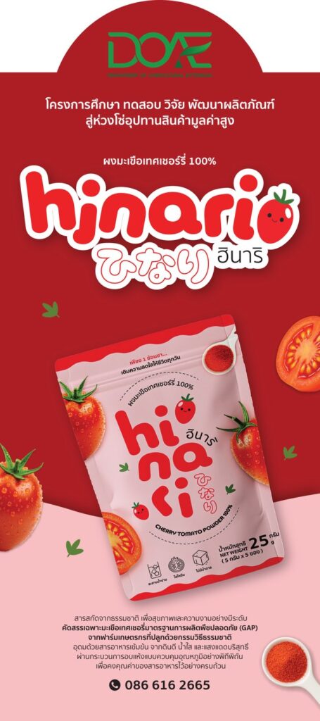 2) “มะเขือเทศเชอร์รี่ผงพร้อมชง” โดย นายสรศักดิ์ สิงห์ดี เกษตรกรรุ่นใหม่ บริษัทบ้านเกษตรฟาร์ม