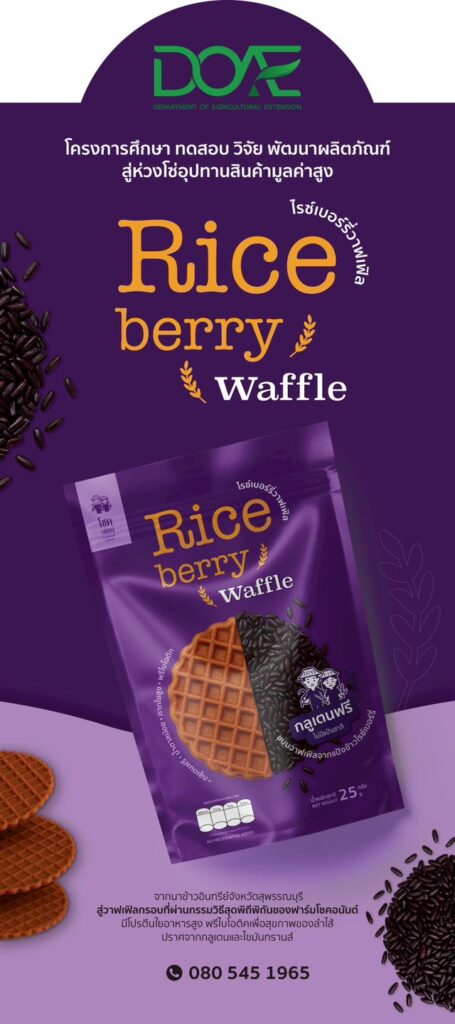 5) “วาฟเฟิลข้าวไรซ์เบอร์รี่พรีไบโอติก” โดย นางสาวปรารถนา ม่วงงาม เกษตรกรรุ่นใหม่ จาก โชคอนันต์ฟาร์มข้าวเพื่อสุขภาพ อำเภอศรีประจันต์ จังหวัดสุพรรณบุรี