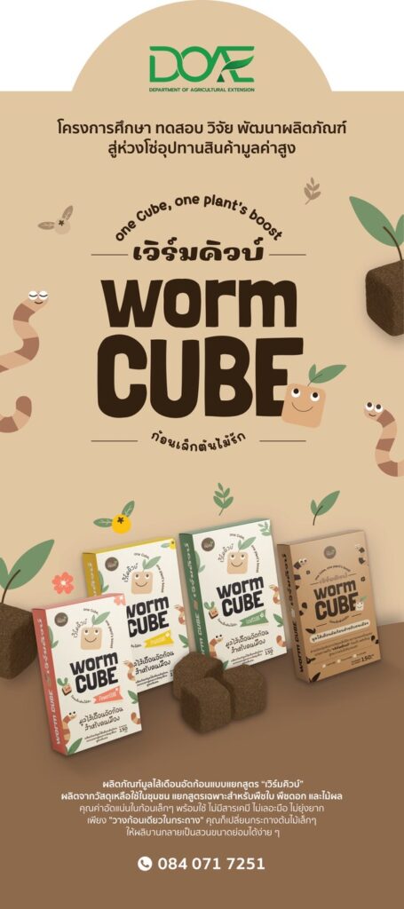 6) “มูลไส้เดือนคิวบ์อัดก้อน” โดย นางสาวสุทธิดา ศุภโสภณ เกษตรกรรุ่นใหม่กลุ่มเกษตรกรจาก บ้านรากดิน อำเภอศรีประจันต์ จังหวัดสุพรรณบุรี