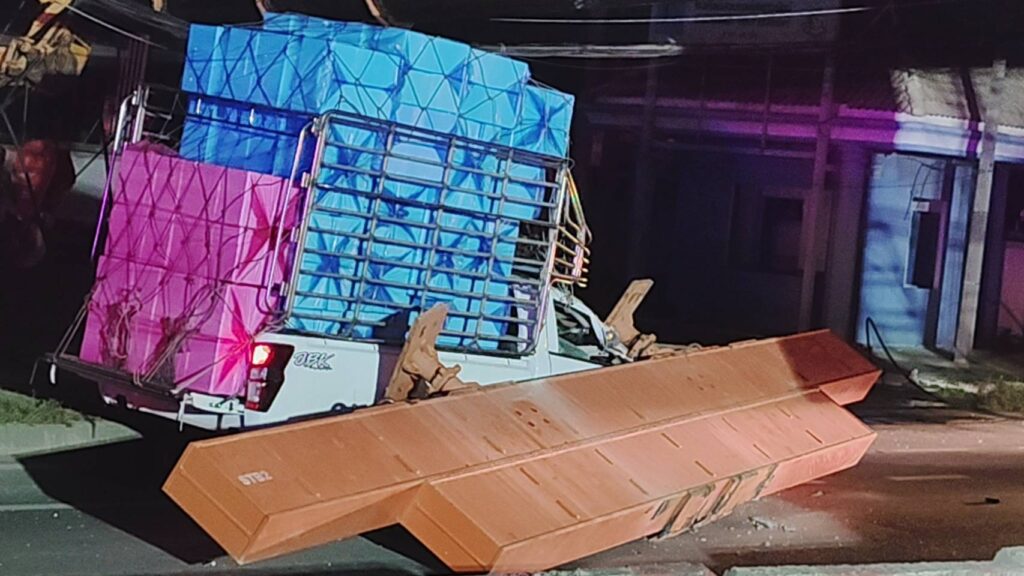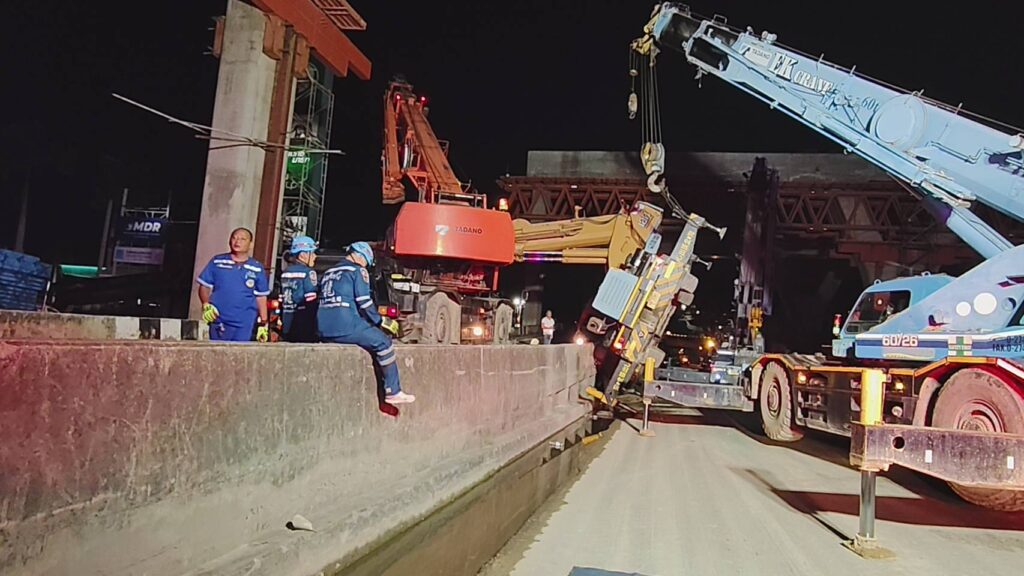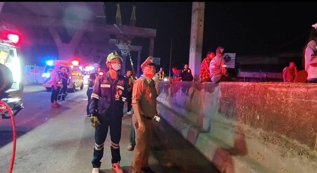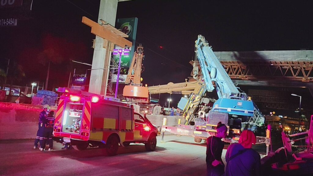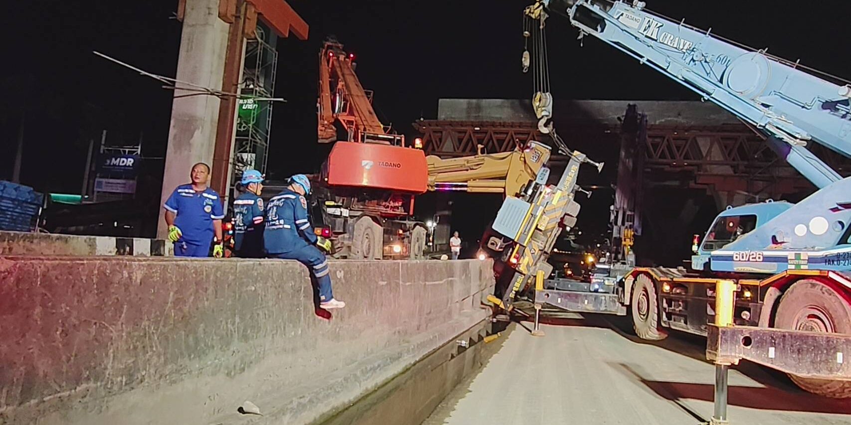เหตุการณ์หวิดสยองรายนี้เกิดเมื่อเวลาประมาณ 02.00 น.ขึ้นวันอาทิตย์ที่ 31 สิงหาคม 2568 ได้เกิดอุบัติเหตุรถเครนขนาดใหญ่หนัก 60 ตัน ที่กำลังยกแท่งเหล็กประกบตอม่อที่ก่อสร้างทางยกระดับถนนพระราม 2 ช่องทางด่วนขาเข้ากรุงเทพฯ บริเวณหน้า ร้านอาหารรอยัล ซีฟู้ดส์-ปั๊มน้ำมัน พีที กม. 27 หมู่ 8 ต.ท่าทราย อ.เมือง จ.สมุทรสาคร ก่อนถึงเซ็นทรัลมหาชัย ประมาณ 100 เมตร ปลายเครนล้มฟาดลงมาพาดสายไฟฟ้าแรงสูงขึ้นไปติดตั้งที่เสาตอม่อทางยกระดับ เป็นเหตุให้คนขับรถเครนบังคับรถไม่ได้ตัวรถเครนพลิกตะแคงคนขับต้องออกมาจากตัวรถขณะที่ผู้ควบคุมได้เร่งนำรถเครนอีกคัน มาช่วยยกรถเครนอีก 2 คันประกบขณะเกิดเหตุได้มี รถยนต์กระบะ อีซูซุ สีขาว หมายเลขทะเบียน ยฉ 656 ชลบุรี บรรทุกกล่องโฟมใส่อาหารทะเลเต็มกระบะท้ายวิ่งผ่านมาทำให้ปลายแท่งเหล็กที่เครนกำลังยกอยู่เกิดหลุดล่วงลงมาหล่นใส่หลังคา กระโปรงด้านคนขับโชคดีคนขับและคนที่นั่งมาได้รับบาดเจ็บที่ศรีษะเจ้าหน้าที่มูลนิธิกู้ชีพสมุทรสาคร นำส่งรพ.เพื่อช่วยเหลือ