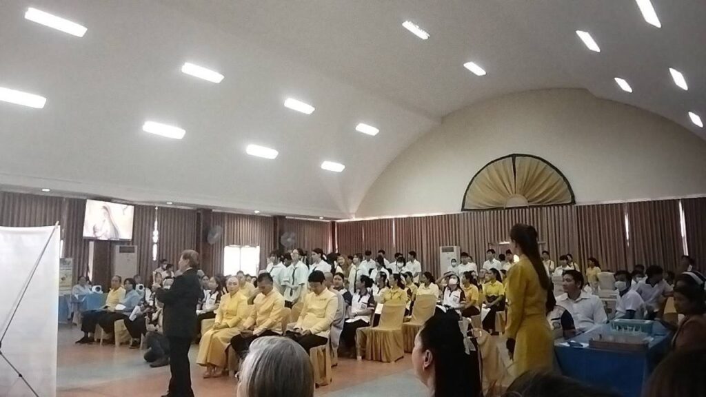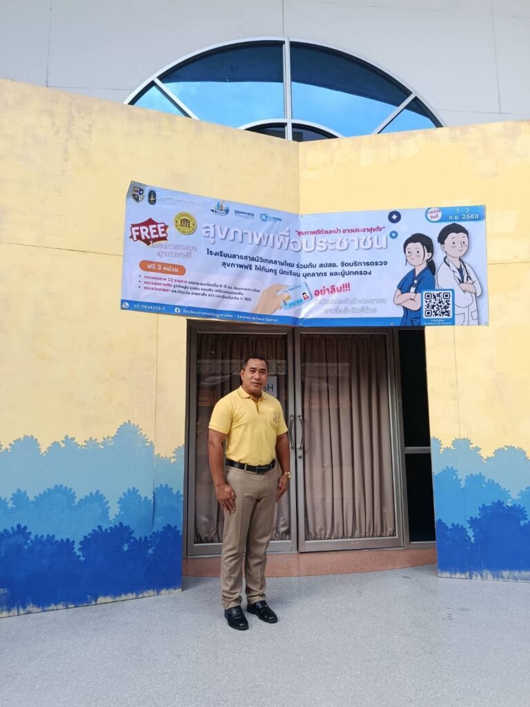 เมื่อวันจันทร์ที่ 1 กันยายน 2568 เวลา 09.00 น. พลตรีหญิง ดาวใจ เจิมเจิดพล อุปนายกสภานักวิชาการประจำคณะกรรมการสมัชชามวลชนเพื่อความมั่นคงภายใน กองอำนวยการรักษาความมั่นคงภายในราชอาณาจักร (สช.มน.กอ.รมน.ส่วนกลาง) และหัวหน้าคณะกรรมการความมั่นคงของรัฐ คณะที่ 1 พร้อมคณะนักวิชาการ สช.มน.กอ.รมน.ส่วนกลาง, ว่าที่พันตรี กิติเฉลิม โครงกาพย์ เลขาธิการสภานักวิชาการฯ, นางสาว อัณญกุญ พุ่มสอาด รองหัวหน้าฯคณะที่ 1, นางสาว แองจีรีน่า ไรส เลขานุการคณะที่ 1, ว่าที่พันตรี ชัชชาญชัญ จันทรโชติสวัสดิ์ รองหัวหน้าคณะที่ 5 เข้าร่วมเป็นเกียรติและสังเกตุการณ์ โครงการสี่เสาหลักพิทักษ์แผ่นดิน ร่วมกับ โครงการสุขภาพเพื่อประชาชน ตรวจสุขภาพฟรี ภายใต้คำขวัญ “สุขภาพดีถ้วนหน้า ชาวประชาสุขใจ” ณ โรงเรียนสารสาสน์วิเทศสายไหม เขตสายไหม กรุงเทพมหานคร คณะผู้บริหารโครงการโดย ดร.ฐิติ ชัยนาม ประธานโครงการสี่เสาหลักพิทักษ์แผ่นดิน ประธานที่ปรึกษากิตติมศักดิ์โครงการสุขภาพเพื่อประชาชน, นางสาว หทัยทิพย์ อู่อรุณ เลขานุการโครงการสี่เสาหลักพิทักษ์แผ่นดิน-ประธานกิจกรรมพิเศษโครงการสี่เสาหลักพิทักษ์แผ่นดิน, ดร.วัลย์ลดา สิงห์สถิตย์ ประธานโครงการสุขภาพเพื่อประชาชน, นางสาว กัลยา ย่อภูเขาสูง รองประธานโครงการสุขภาพเพื่อประชาชน และนางสาว พิมลศรี อำไพ รองประธานโครงการเพื่อสุขภาพประชาชน และนางสาว ชนกนาฎ หารสาริกิจ รองผู้อำนวยการโรงเรียนสารสาสน์วิเทศสายไหม และคณะครู-อาจารย์และเจ้าหน้าที่ให้การต้อนรับ พีธีเปิด โครงการสุขภาพเพื่อประประชาชน โดยมี ดร.ฐิติ ชัยนาม เป็นประธาน เปิดกรวยหน้าพระบรมฉายาลักษณ์และผู้เข้าร่วมพิธีทุกคนร่วมร้องเพลงสรรเสริญพระบารมี จากนั้น ดร.ฐิติ ชัยนาม และ ดร.วัลย์ลดา สิงห์สถิตย์ ได้กล่าวถึงโครงการมีวัตถุประสงค์ เพื่อส่งเสริมการดูแลสุขภาพเชิงรุก โดยมุ่งมั่นที่จะให้ผู้ป่วยมีส่วนร่วมในการดูแลตนเองก่อนเกิดการรุกรามของปัญหาสุขภาพจนถึงขั้นรุนแรง ใช้บัตรประชาชนใบเดียวได้รับสิทธิ์ตรวจสุขภาพฟรีทั่วประเทศไทย เพื่อการค้นพบโรคภัยเร็ว รักษาได้ทัน ป้องกันโรคร้ายก่อนเกิดการสูญเสีย โดยการเสริมสร้างความร่วมมือกับองค์กรปกครองส่วนท้องถิ่น หน่วยงานภาครัฐ ภาคเอกชน ภาคประชาสังคม บริษัท ห้างร้าน องค์กรต่าง ๆ ในการดูแลและพัฒนาคุณภาพชีวิตของประชาชนทุกพื้นที่อย่างยั่งยืน เป็นแผนงานโครงการตรวจสุขภาพเชิงรุกให้แก่ประชาชนภายใต้สิทธิประโยชน์ของสำนักงานหลักประกันสุขภาพแห่งชาติ (สปสช.) กลุ่มเป้าหมาย เช่น ผู้มีรายได้น้อย ประชาชนทั่วไป นักเรียน นิสิต 